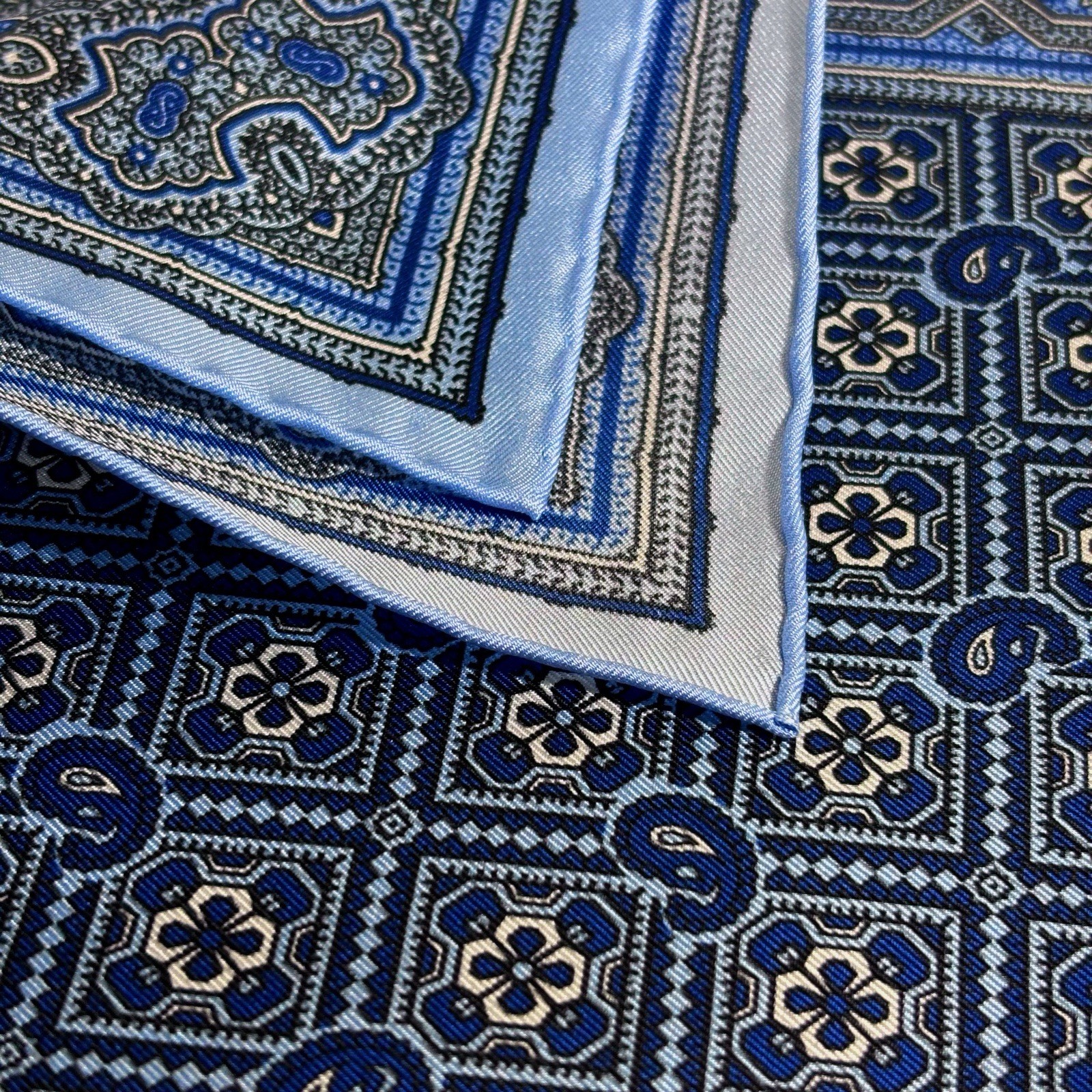 Light Blue Geometric Silk Pocket Square Handmade in England