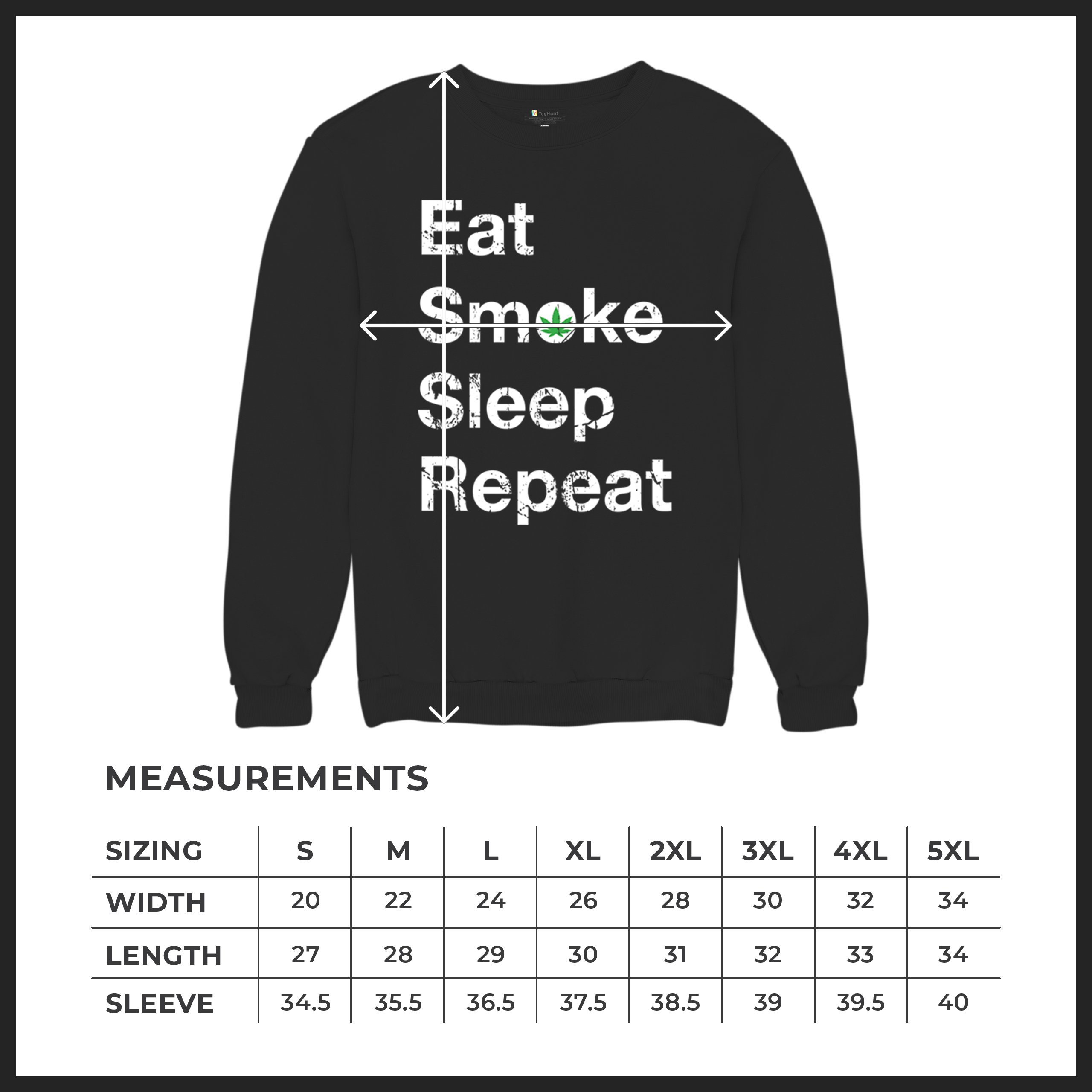 Eat Smoke Sleep Repeat Sweatshirt Cannabis Weed 420 Funny Marijuana Crewneck