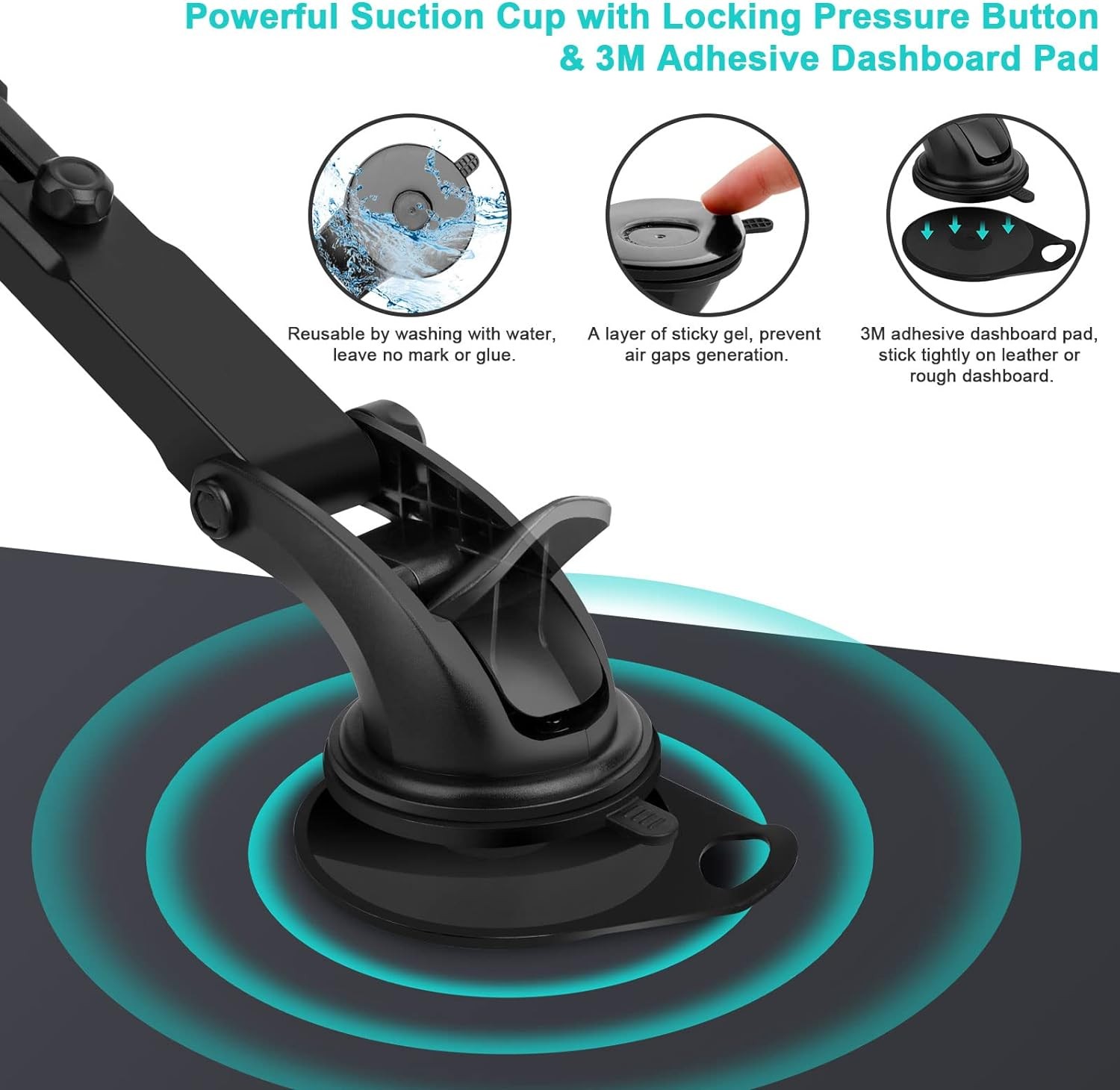 Car Dashboard Windshield Tablet Mount Holder, 360 Rotation Window Black