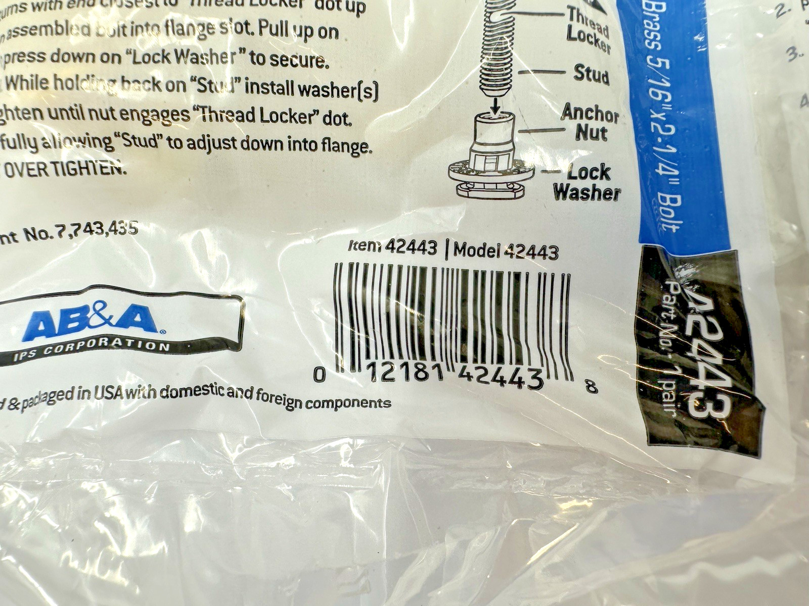Lot Of 5 SetFast Self Adjusting Toilet Bolts No Cut 5/16 x 2-1/4 Part 42443