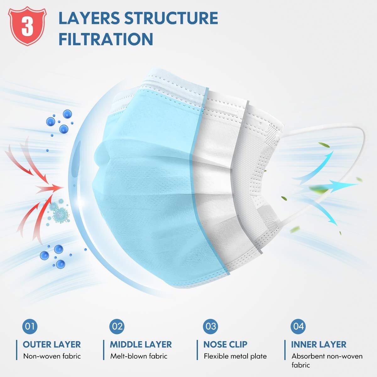 Disposable Face Masks Blue 3 Ply Earloop Protective Breathable Mouth Cover