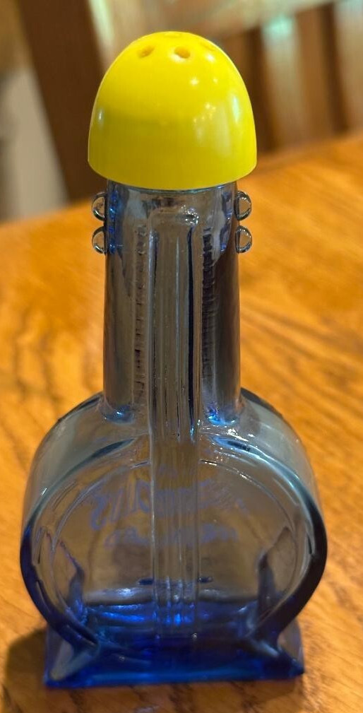 как выглядит Vintage Salt Shaker Cobalt Blue Glass Banjo Guitar Prostrollos in Howard RARE фото