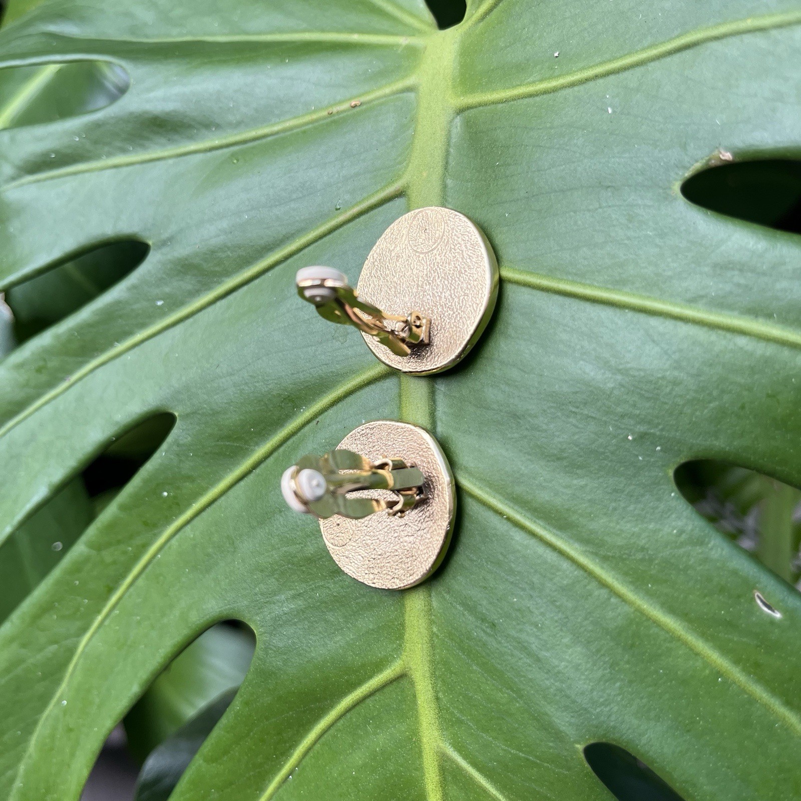как выглядит Matte Gold tone necklace and earrings Set with Brown enamel Center 20.5 Long фото