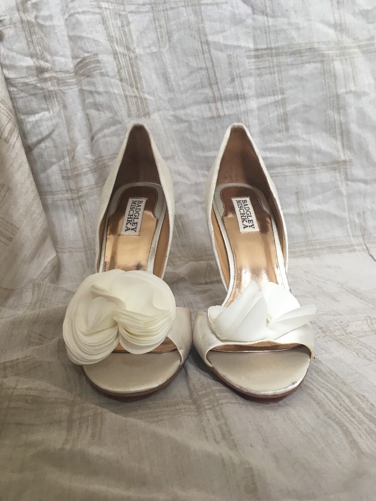 как выглядит Badgley Mischka White Satin, Womens Shoes, Size 8m фото
