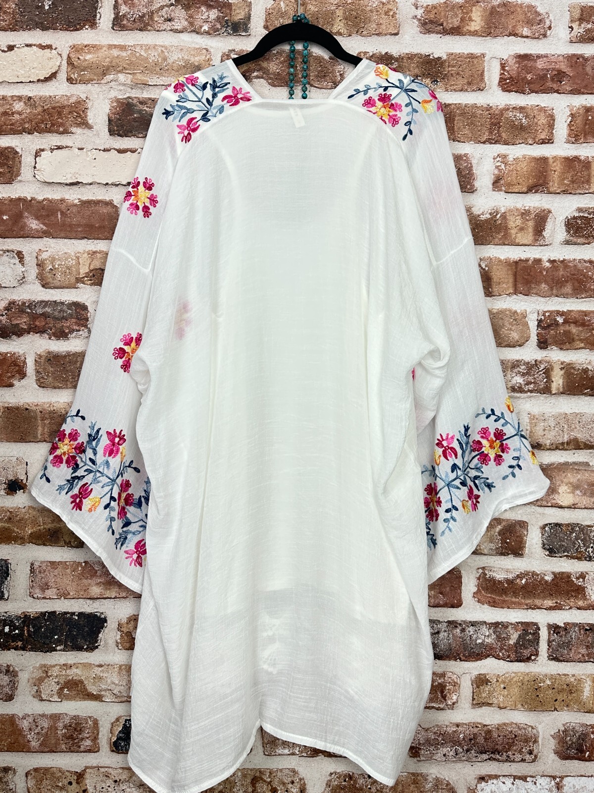 как выглядит PLUS SIZE FLORAL BOHO WHITE EMBROIDERED KIMONO CARDIGAN DUSTER OS fits S- 2X фото