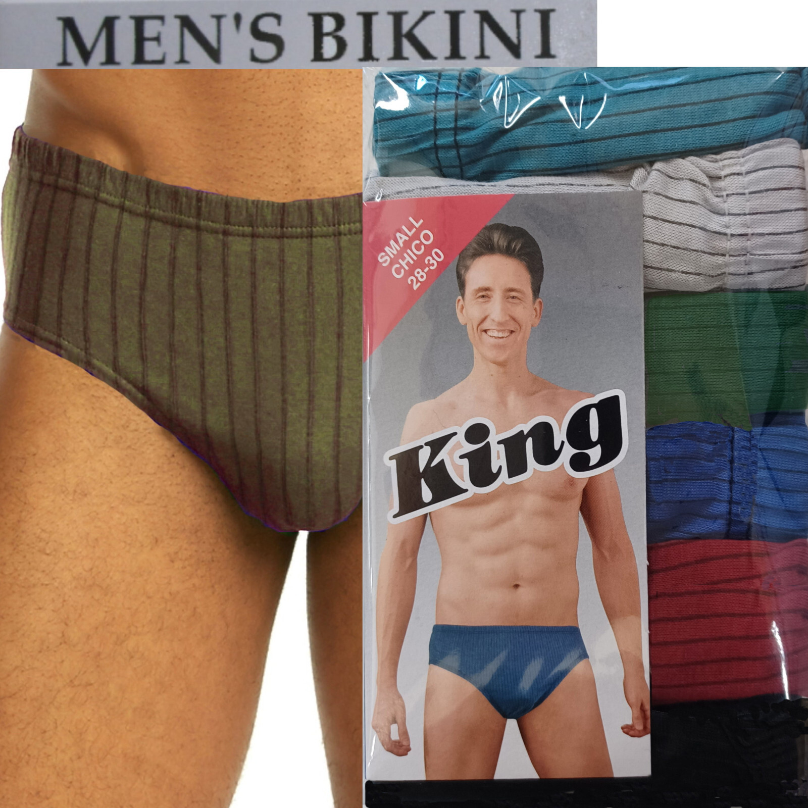 как выглядит 6 PACK MEN LOW RISE BIKINI STRIPED MEN UNDERWEAR SIZE SMALL 28-30 фото