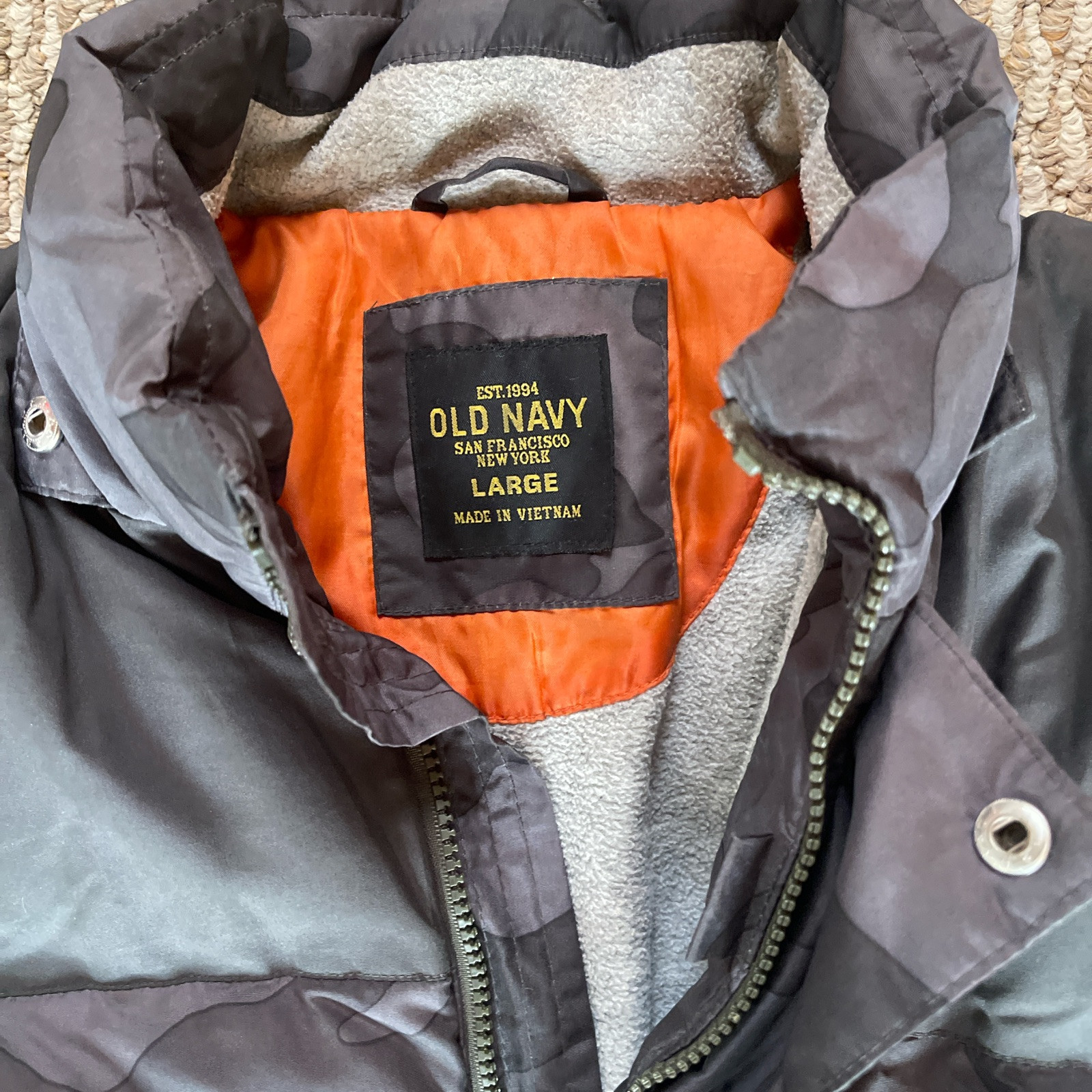 Old Navy Black and grey camouflage puffer jacket pufferjacket kids size L