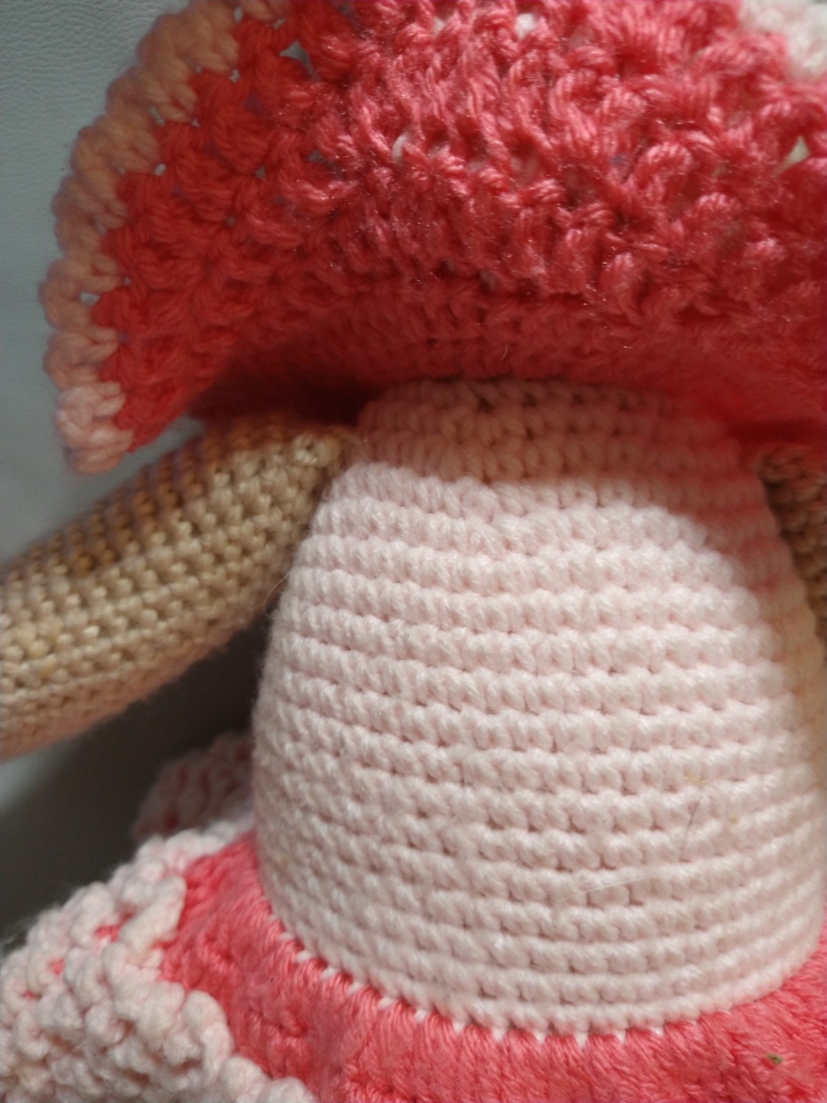Handmade crocheted bear In pink dress