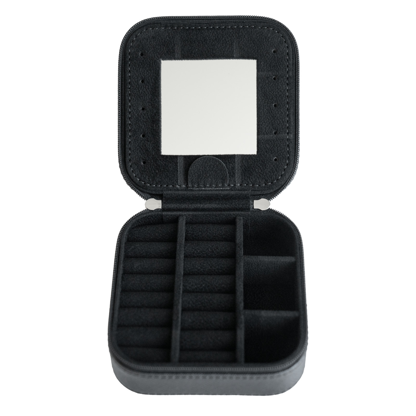 High Quality Travel Jewelry Case TWO ROWS FOR RINGS Mirror, Necklace Storage