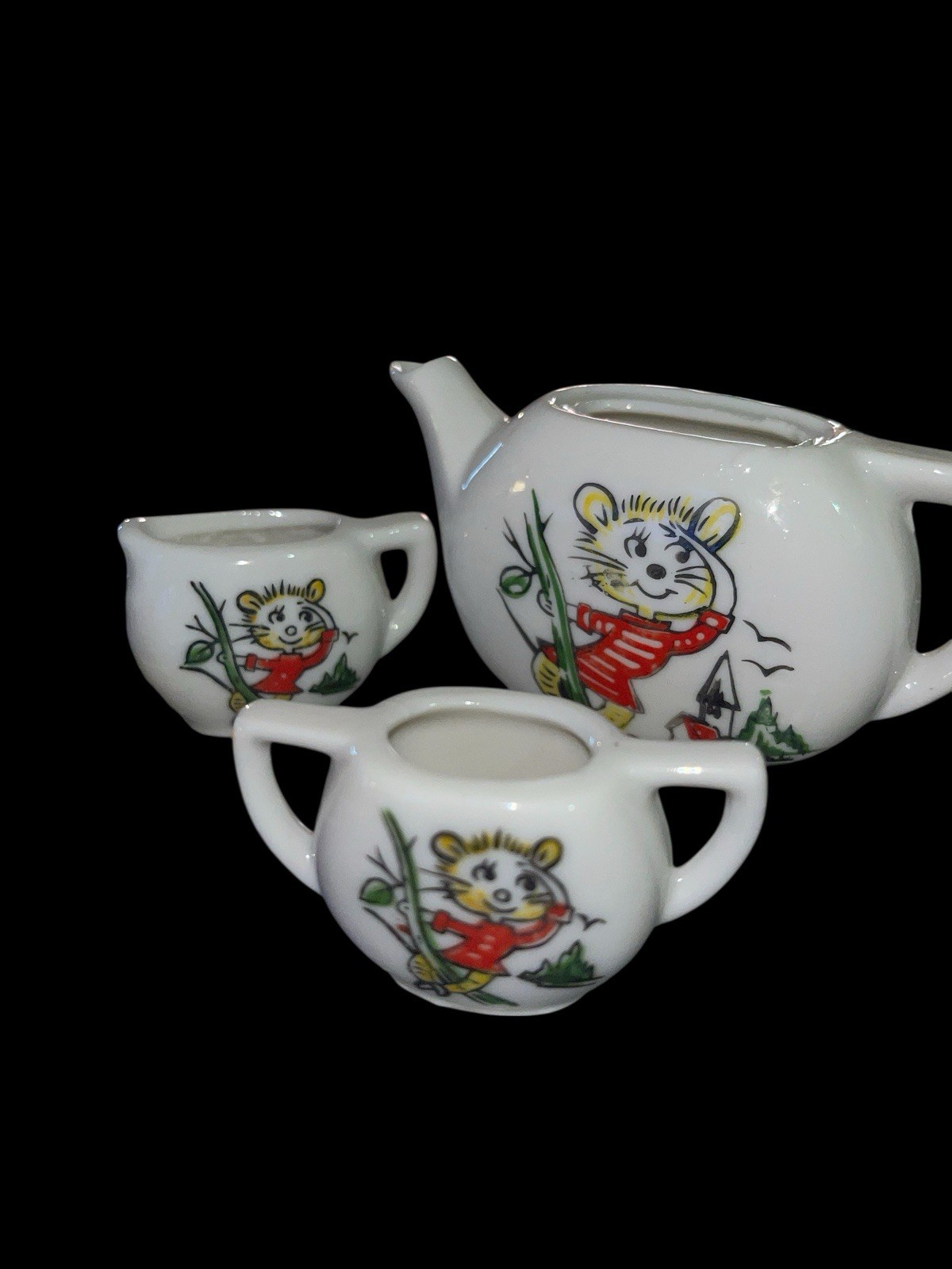 Vintage 40s Miniature Kitty Tea Set Made in Japan Dollhouse Cat No Lids