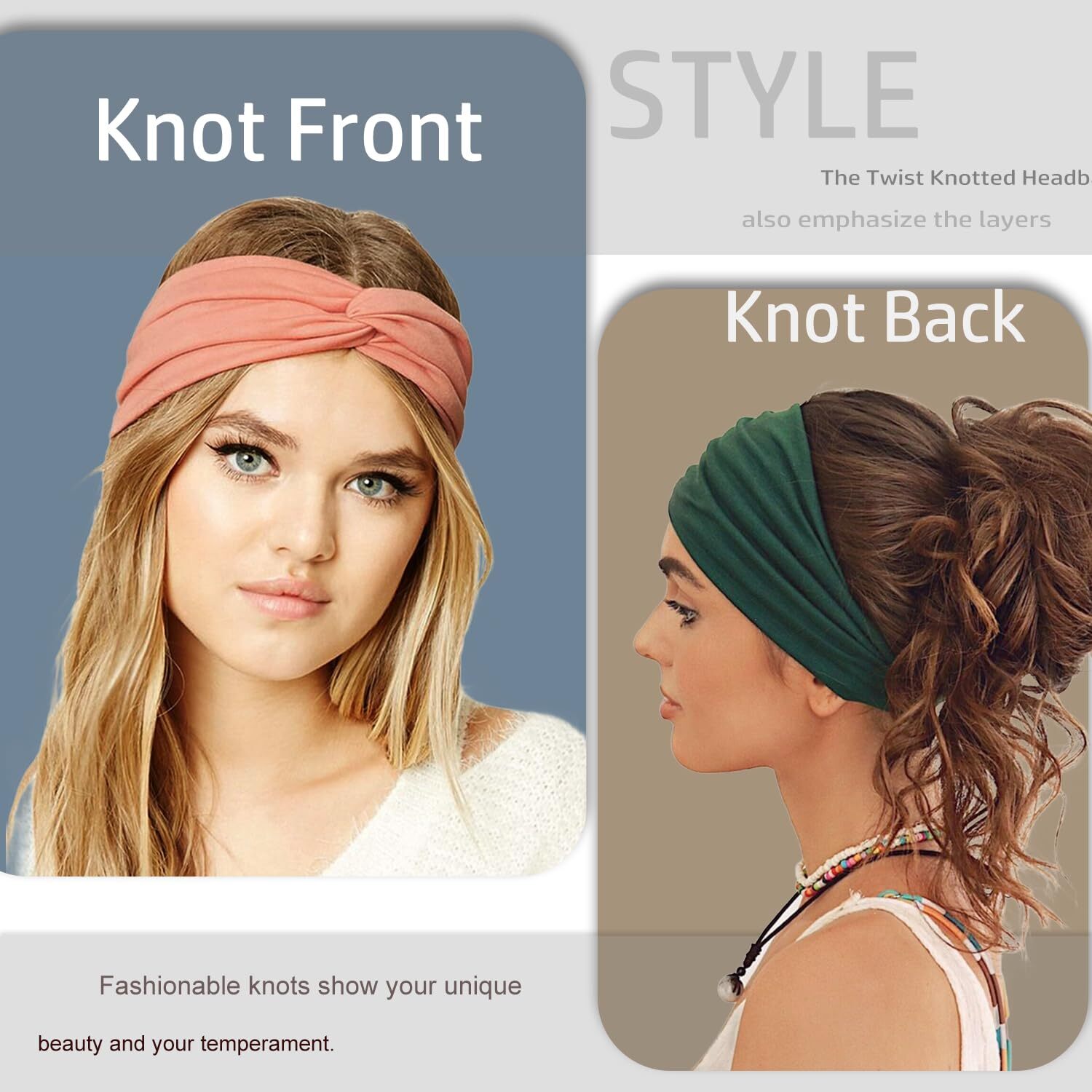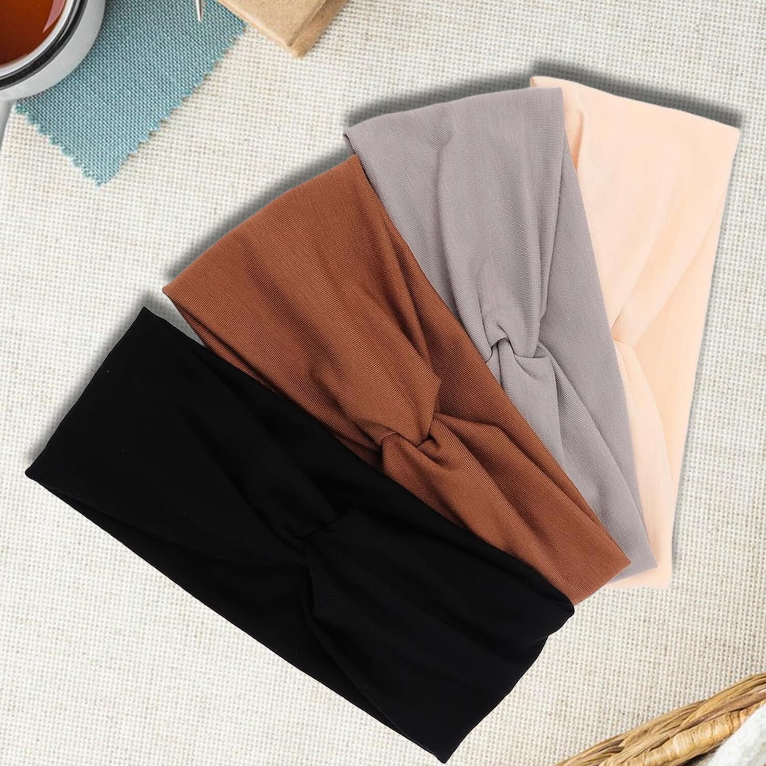 6 Pack Black Twist Knotted Headbands Non-Slip Stretchy Yoga Running Workout