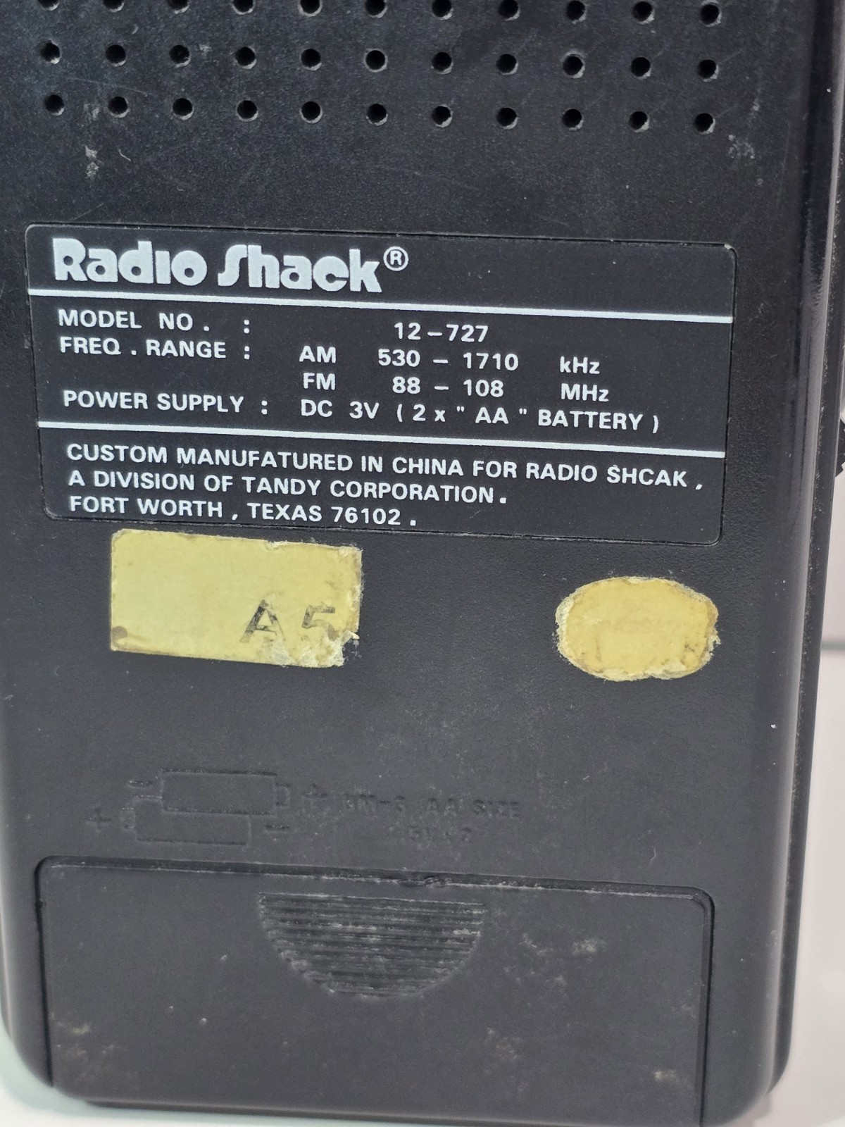 Vintage RADIO SHACK AM/FM POCKET RADIO, 12-727 Works - With Error SHCAK