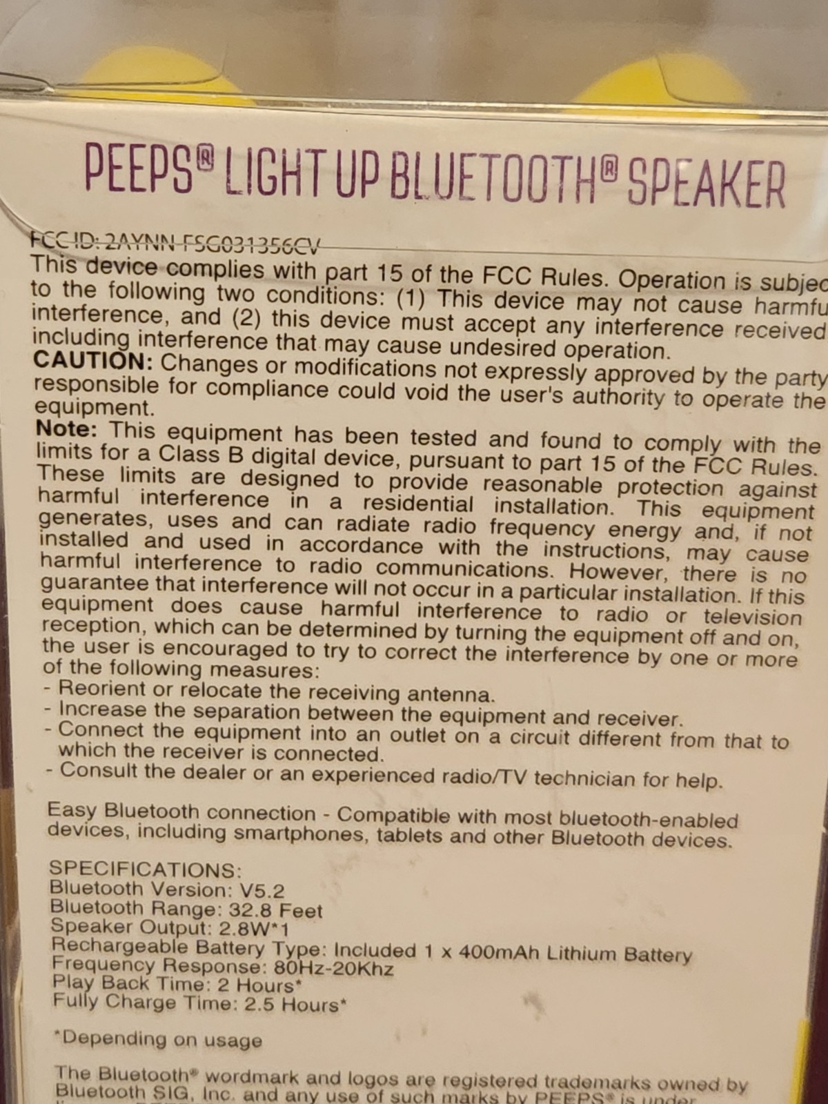 Peeps Light Up Bluetooth Speaker Yellow Bunny Rechargeable Brand New
