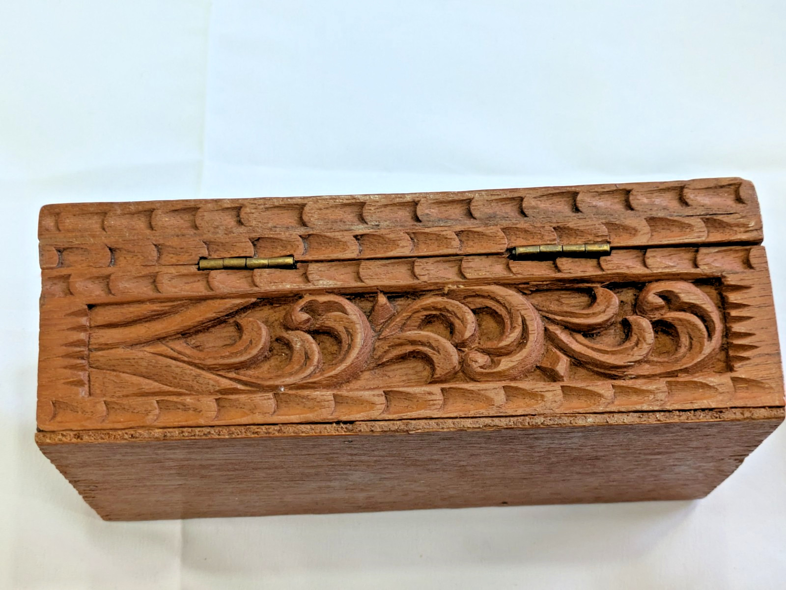 • Vintage Hand Carved Wood 8 x 4 x 3 Hinged Lid Box