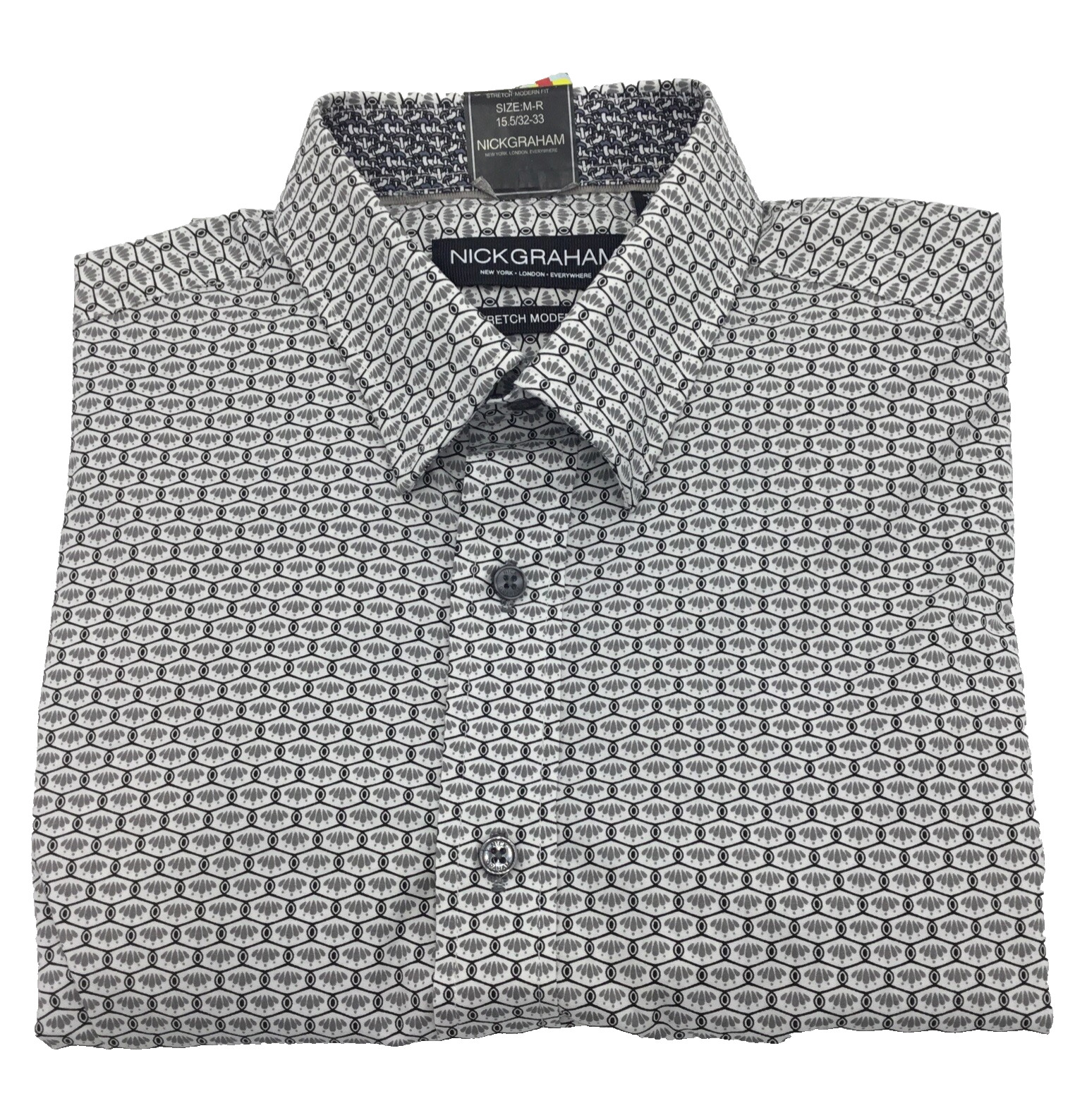 Nick Graham Men's Stretch Modern Fit Dress Shirt, Grey, M 15.5 32-33