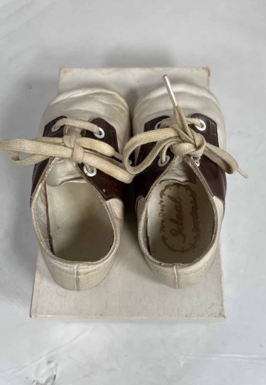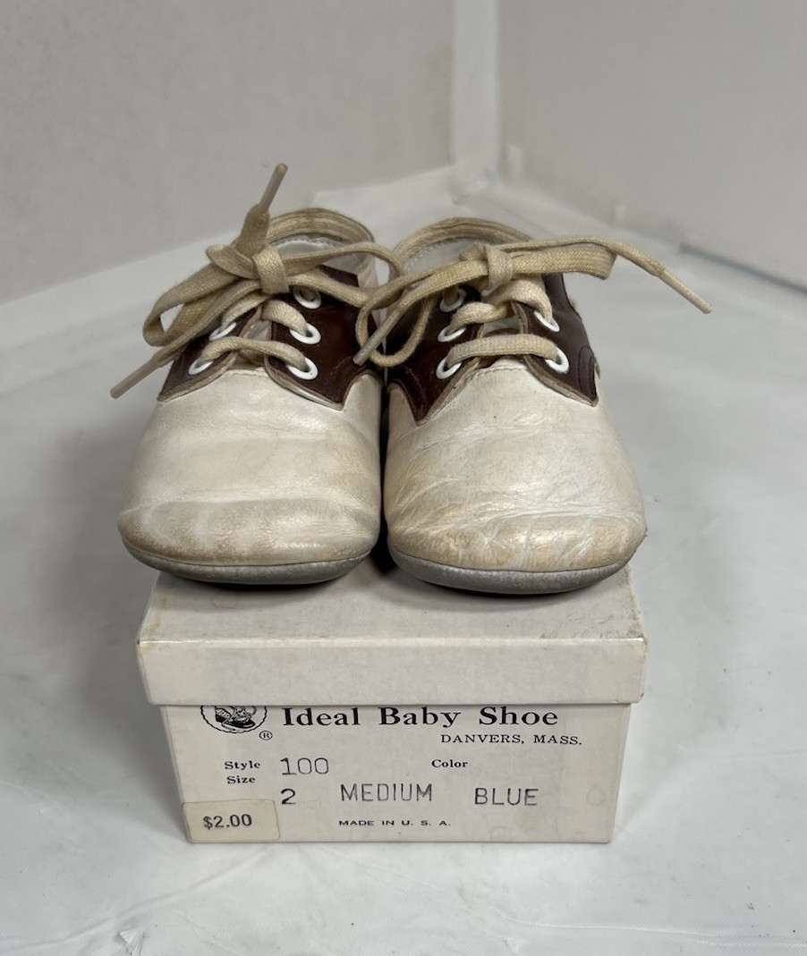 Vtg Mrs. Day's Ideal Baby Shoes Size 4 -Brown White Saddle Shoes Lacing Tie