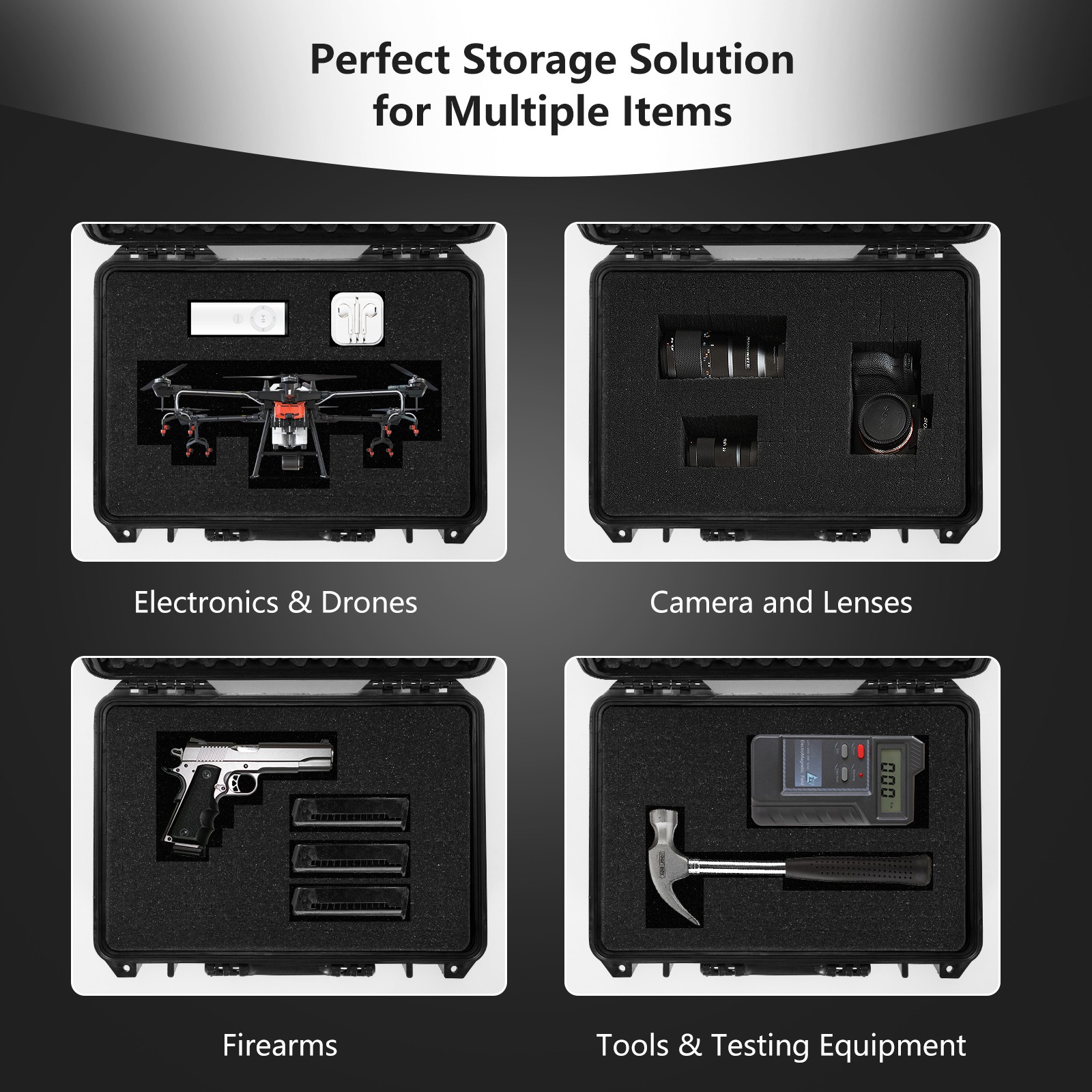 18.5-Inch Multi-Purpose Hard Case Camera Box W/Customizable Foam IP66 Waterproof