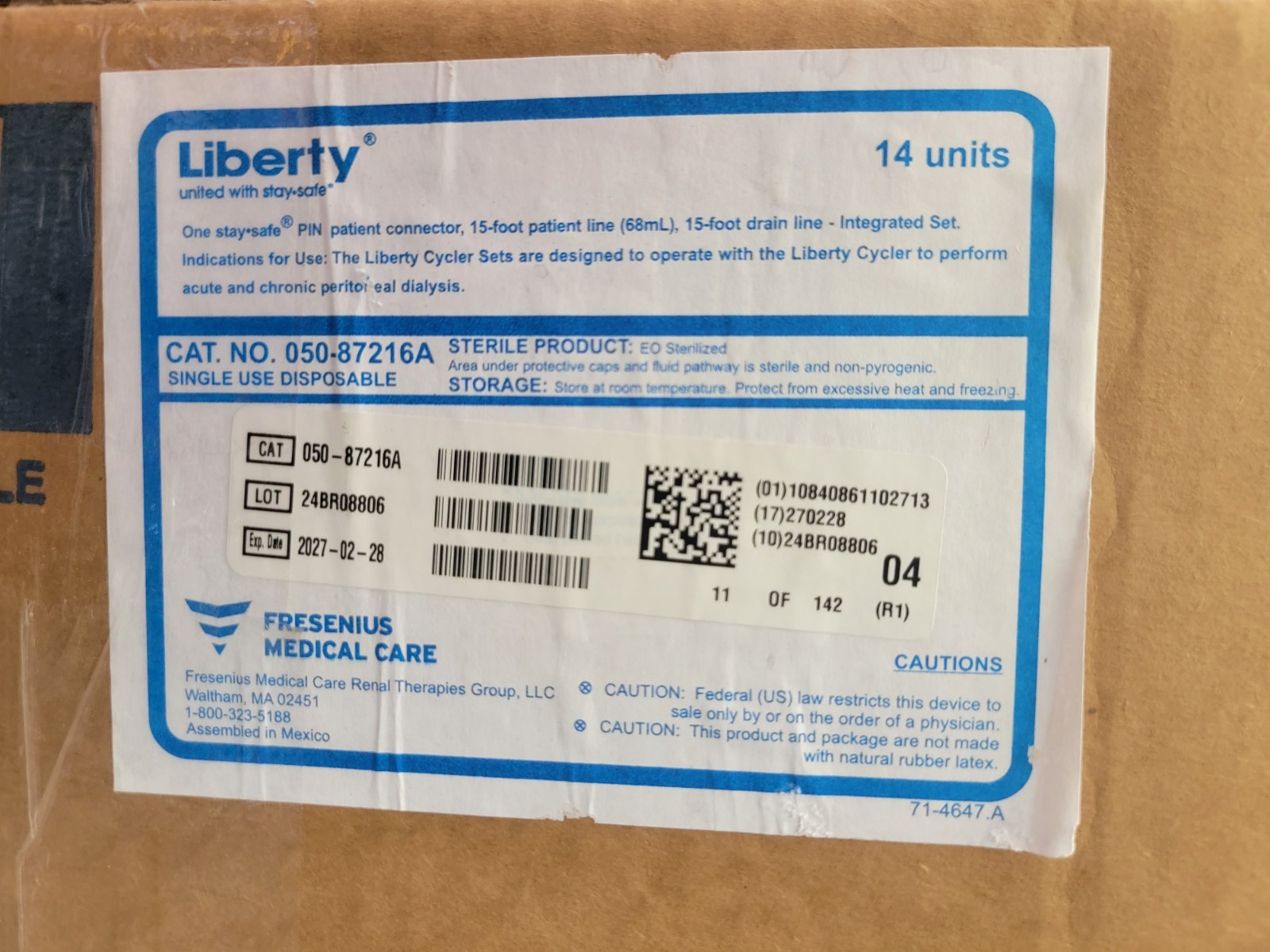 14 Pack Liberty Single Patient Home Care Dialysis Connector Cycler Set 050-87216