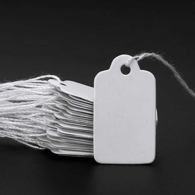 как выглядит 200 Pcs Blank White Hang Tags W/ String Jewelry Clothing Product Labels New фото