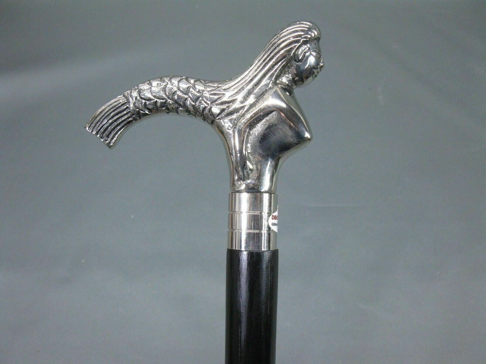 как выглядит Antique Style Victorian Foldable Wooden Walking Stick Solid Brass Mermaid Handle фото