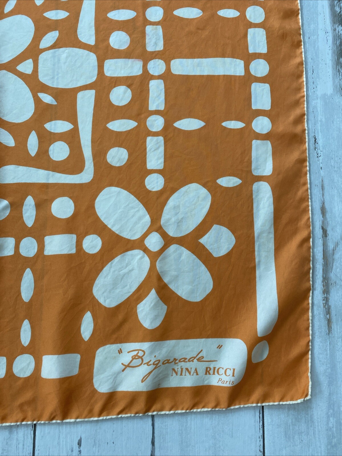 как выглядит Vintage NINA RICCI Paris 100 SILK Bigarade SCARF Tangerine 30 x 30 фото