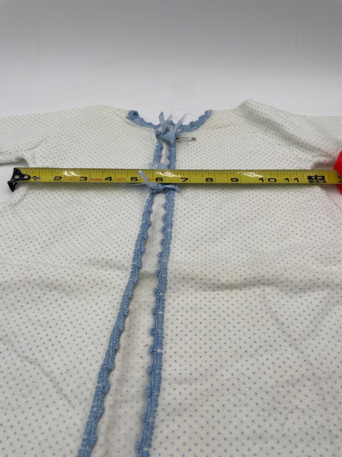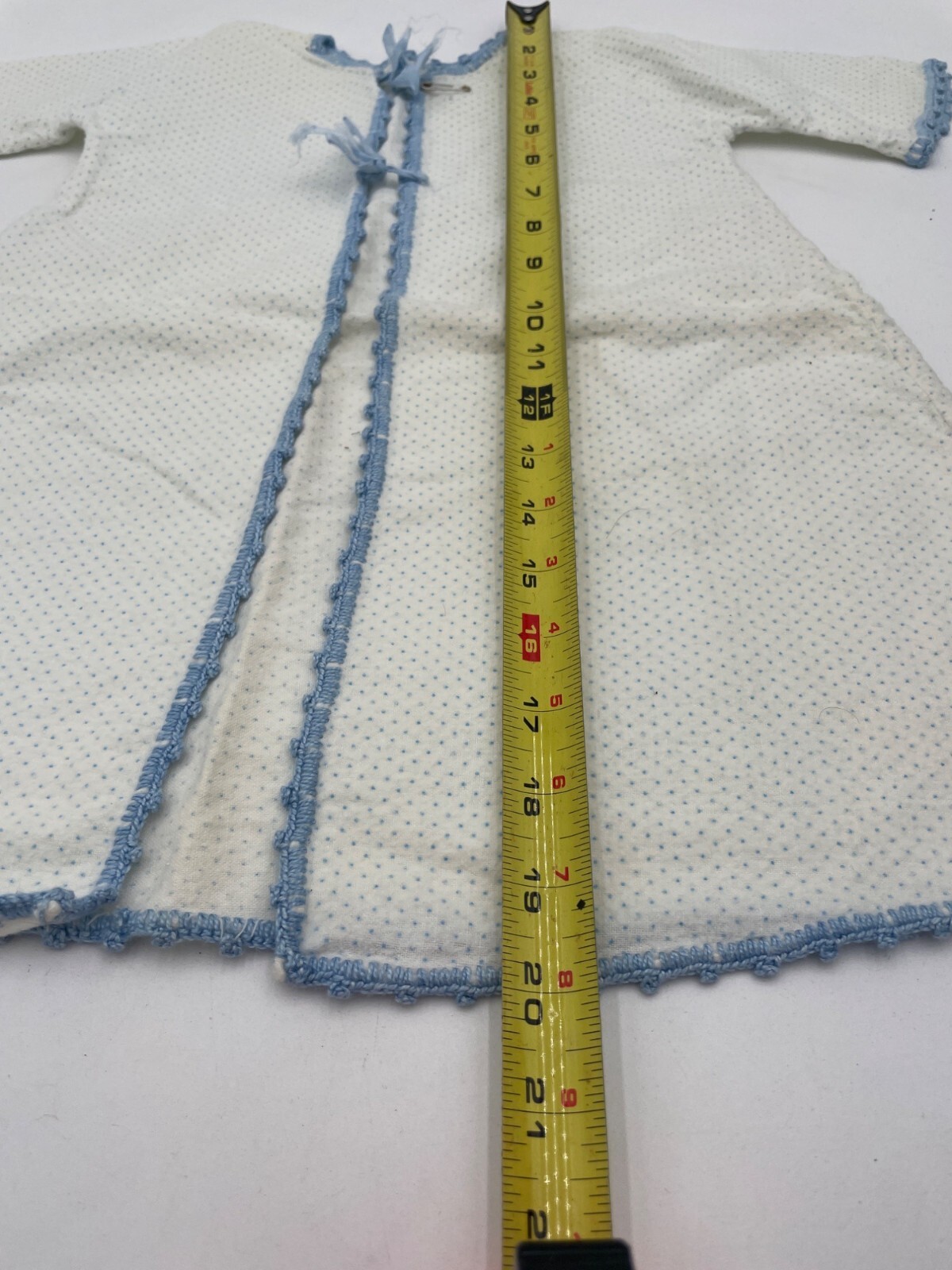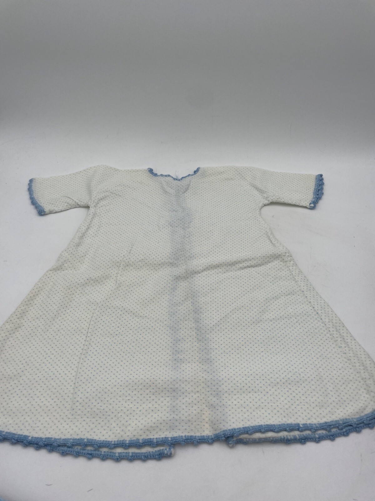 как выглядит Vintage Baby Kimona Robe Layette Flannel Gown Blue Polka Dots Crochet Trim фото
