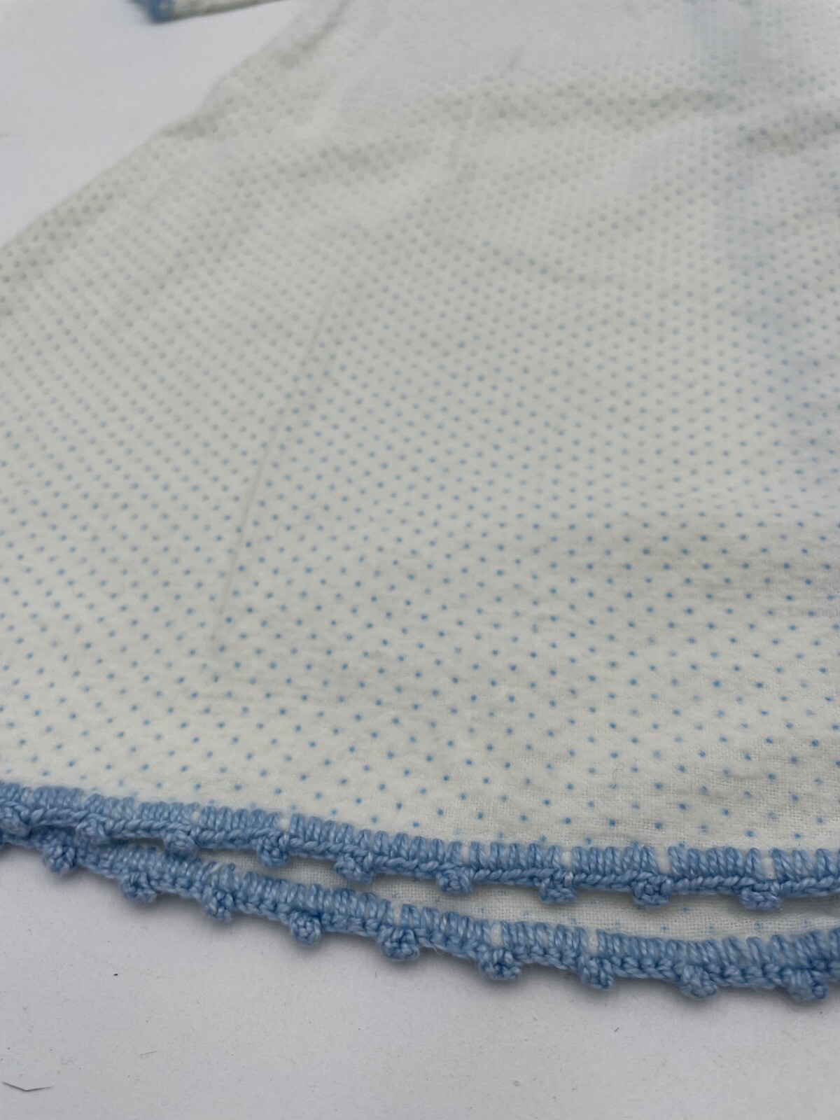 Vintage Baby Kimona Robe Layette Flannel Gown Blue Polka Dots Crochet Trim