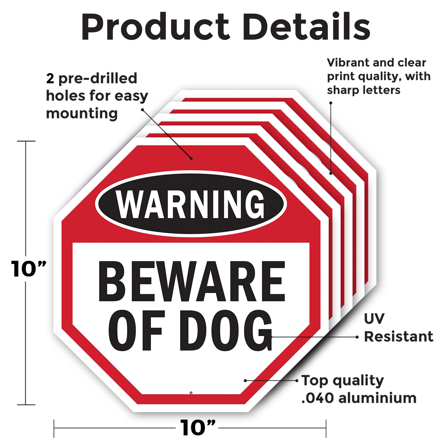 как выглядит Warning Beware of Dog Octagon Sign Weather Resistant Made in the USA фото
