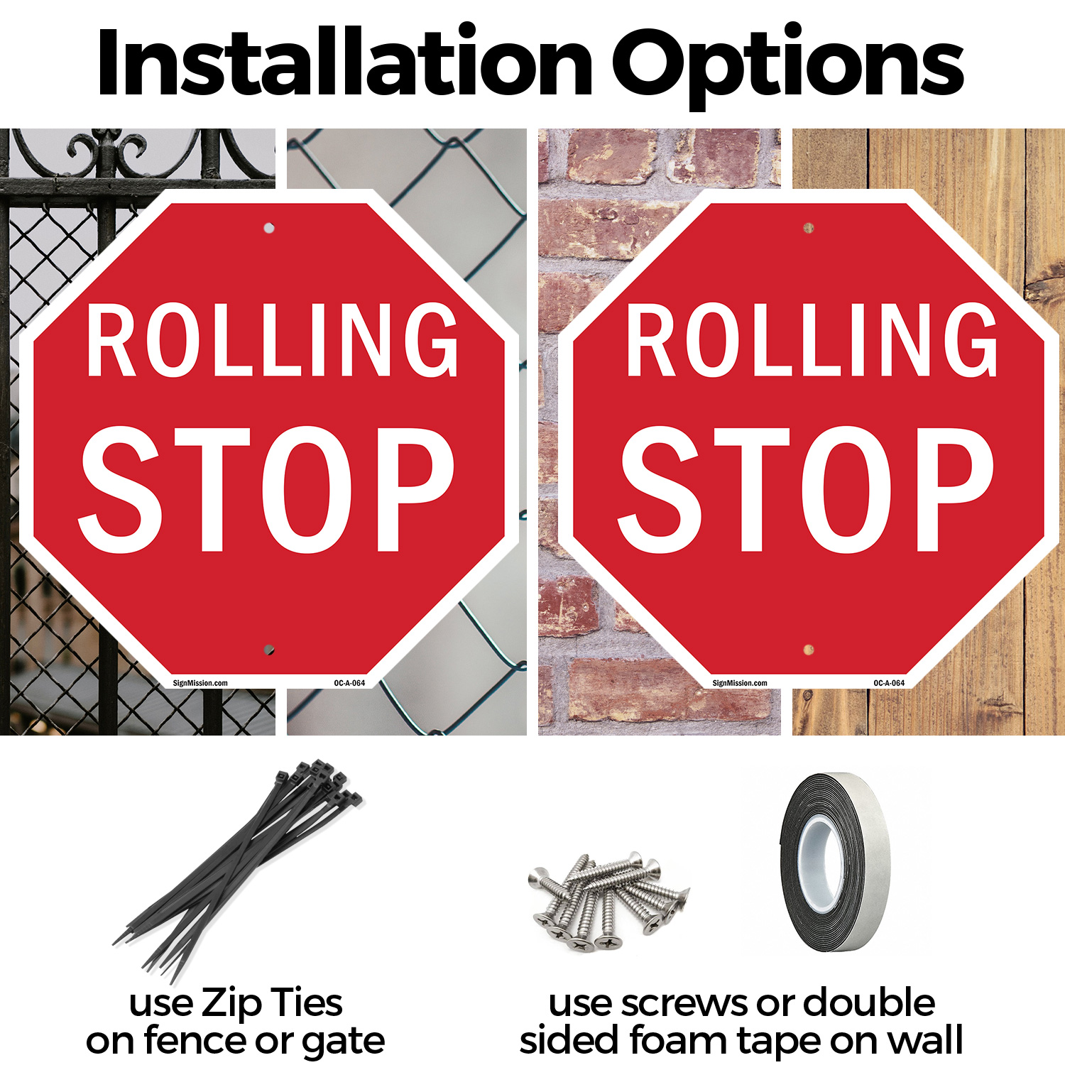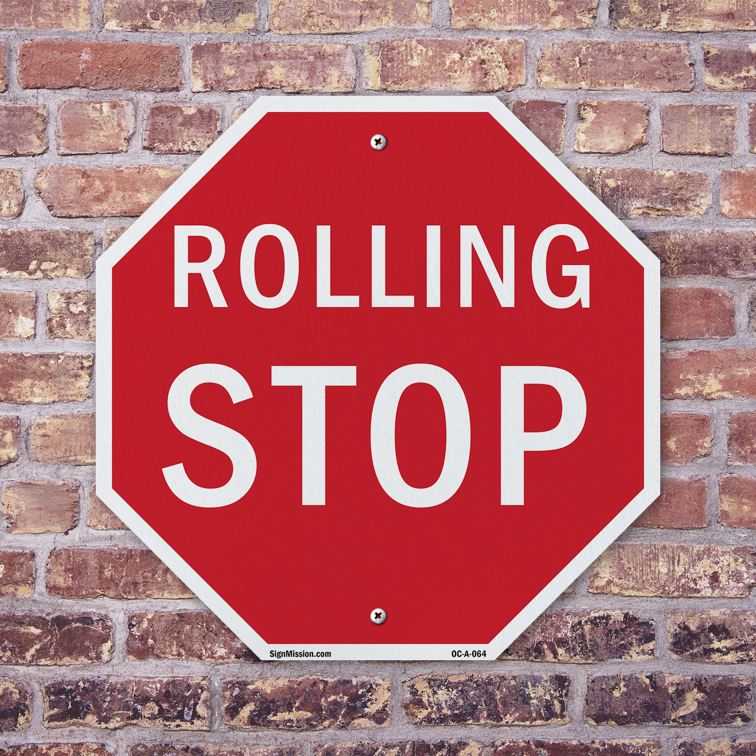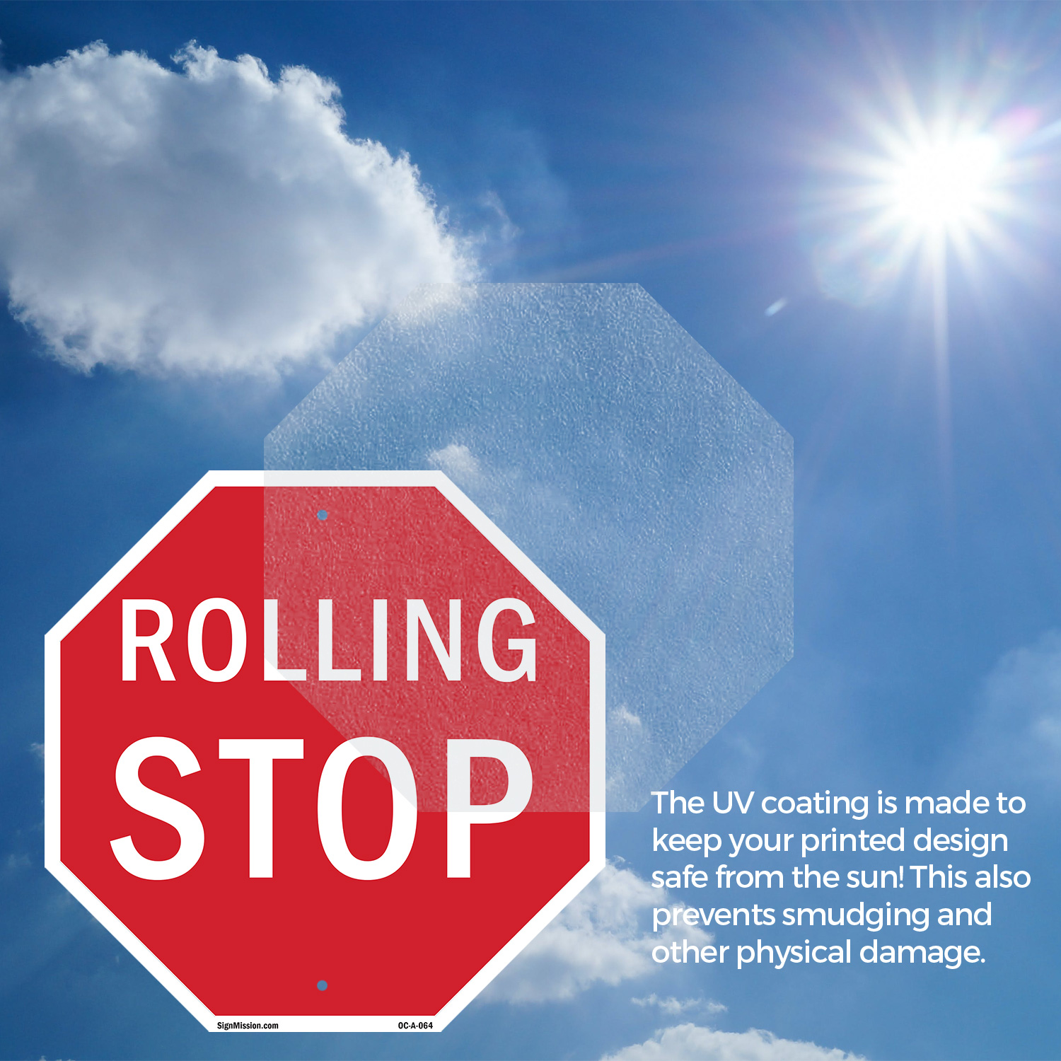 Rolling Stop Octagon Sign Weather Resistant UV Protected Made in the USA