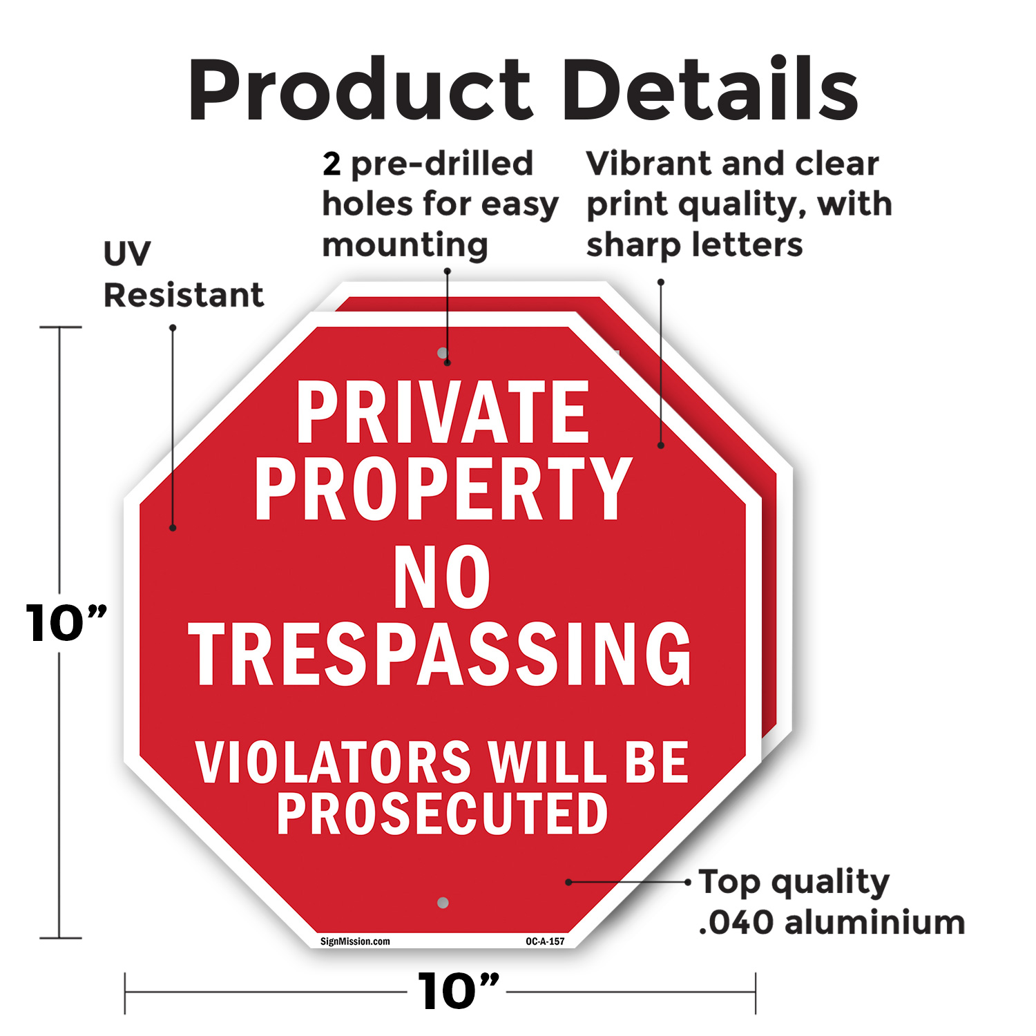 Private Property No Trespassing V Octagon Sign Weather Resistant Made in the USA