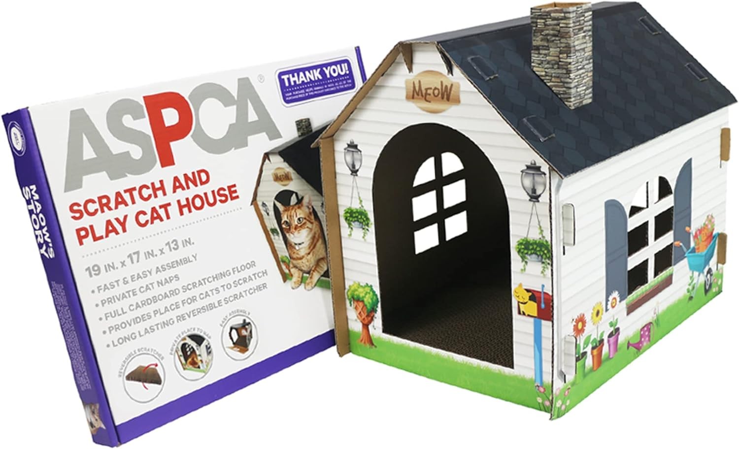 Cardboard Cat House Hideaway Playhouse with Scratcher Scratching Cottage