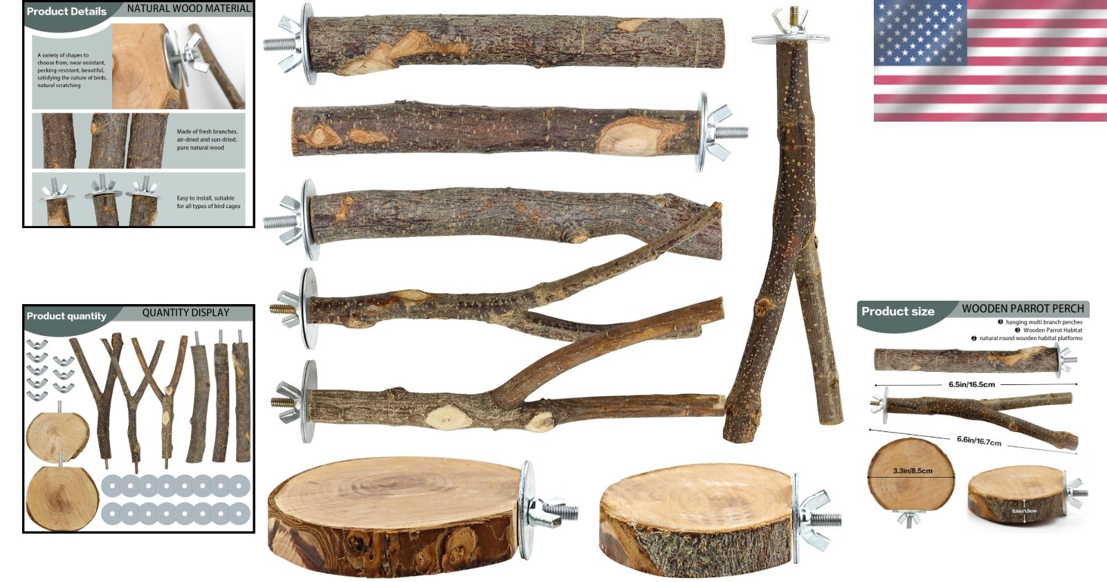 как выглядит Eco-Friendly Wooden Bird Perches - Ideal Foot Exercise Toys for Cage Birds фото