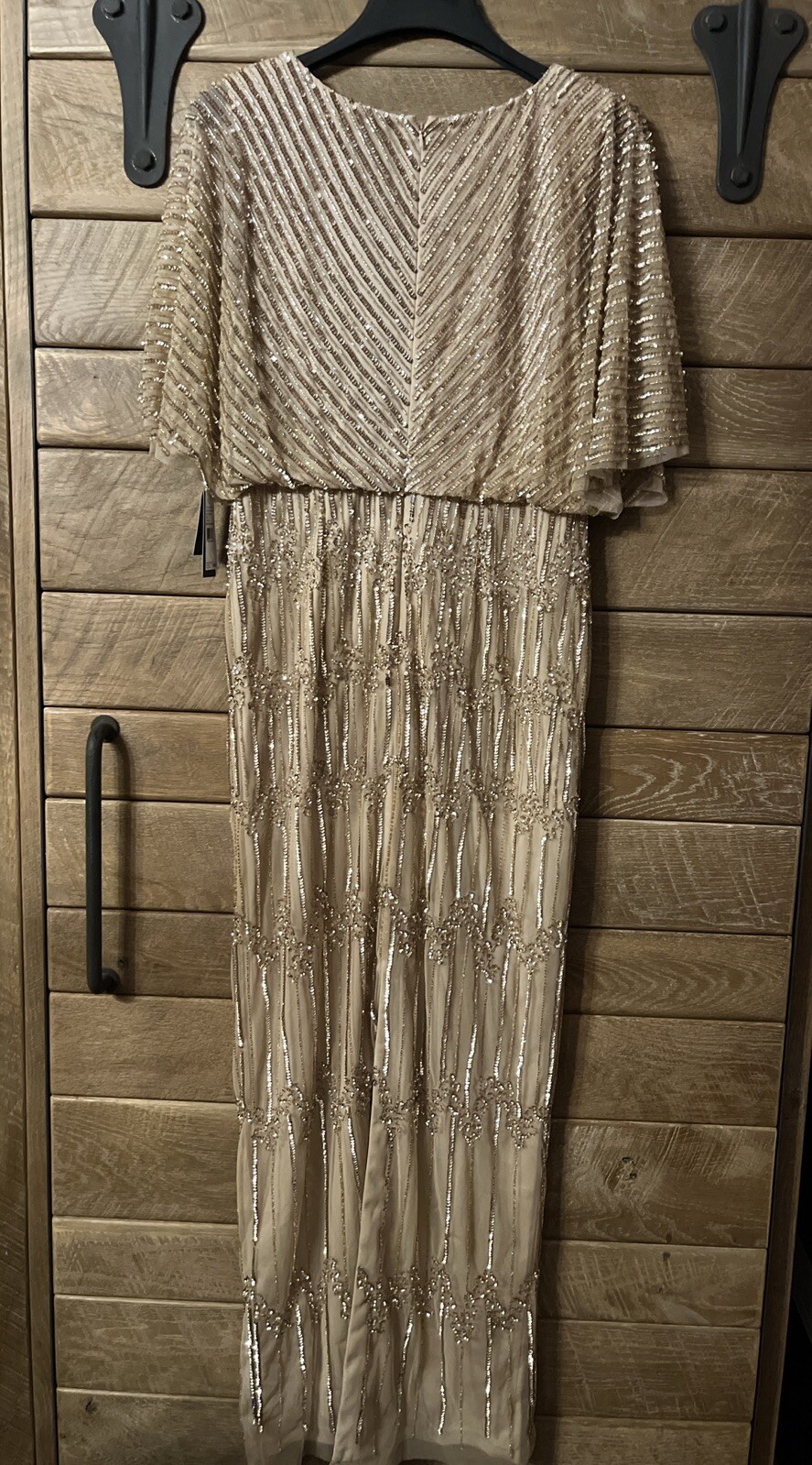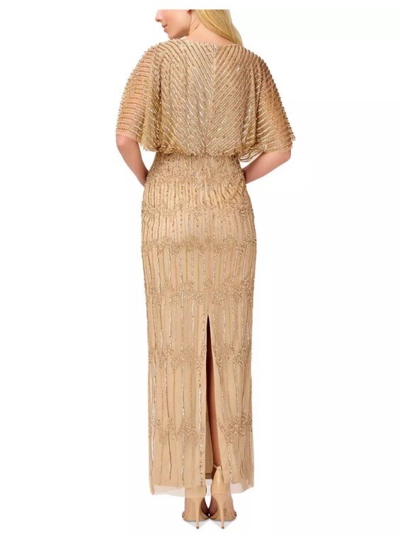 Adrianna Papell Womens Gold Beaded Surplice Maxi Evening Dress Gown Sz. 12 329