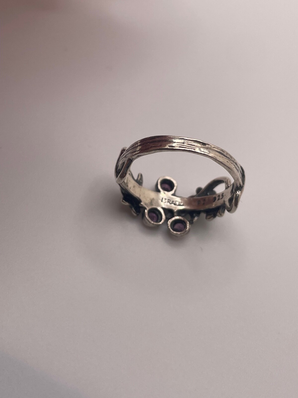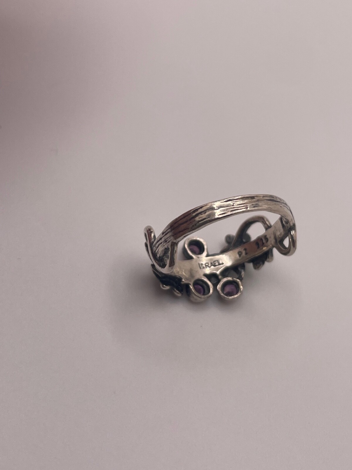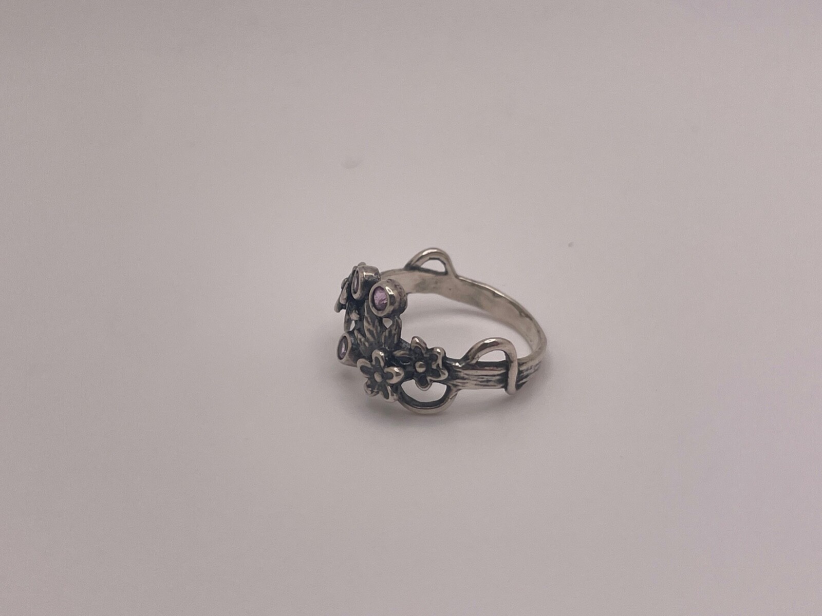 как выглядит Sterling Silver Floral Flower Purple Stone Ring 3.64 grams Size 8 фото