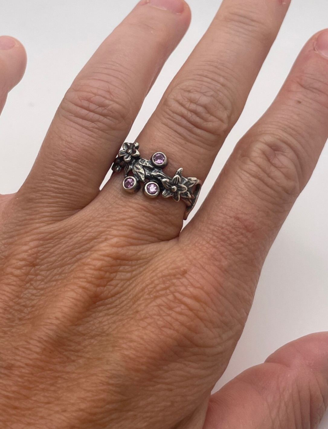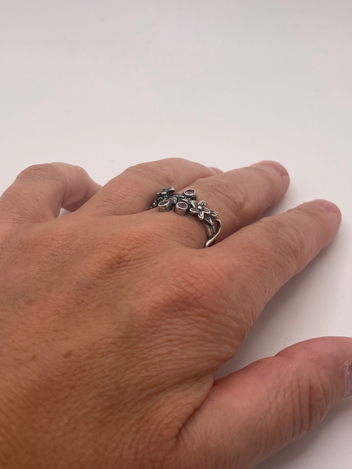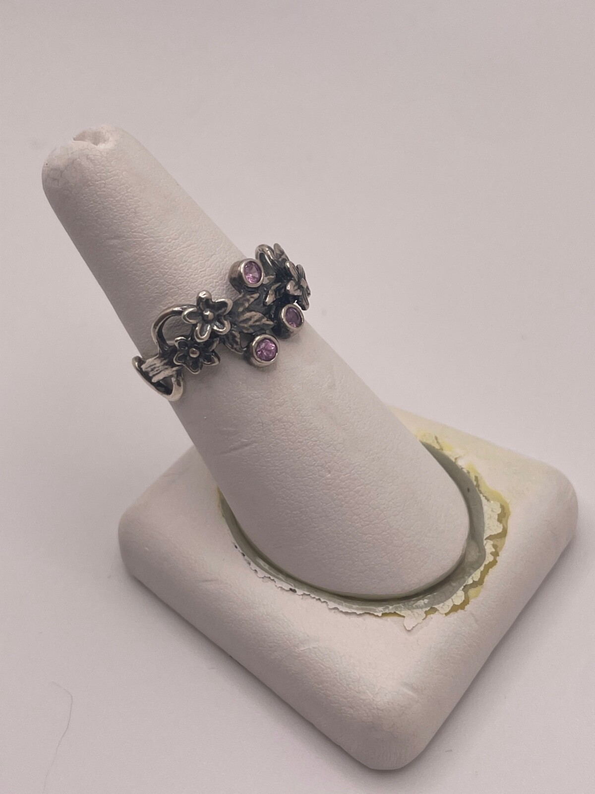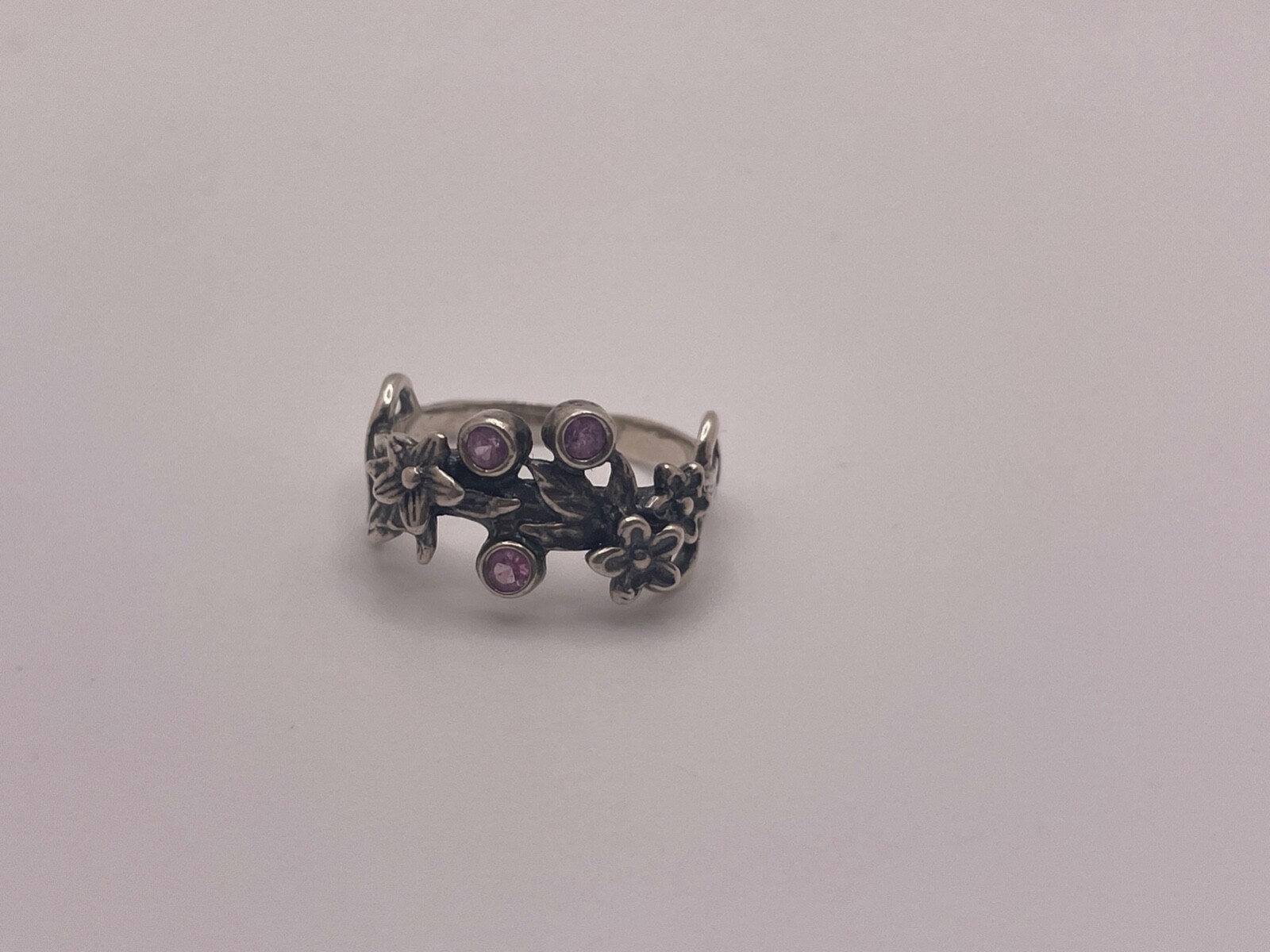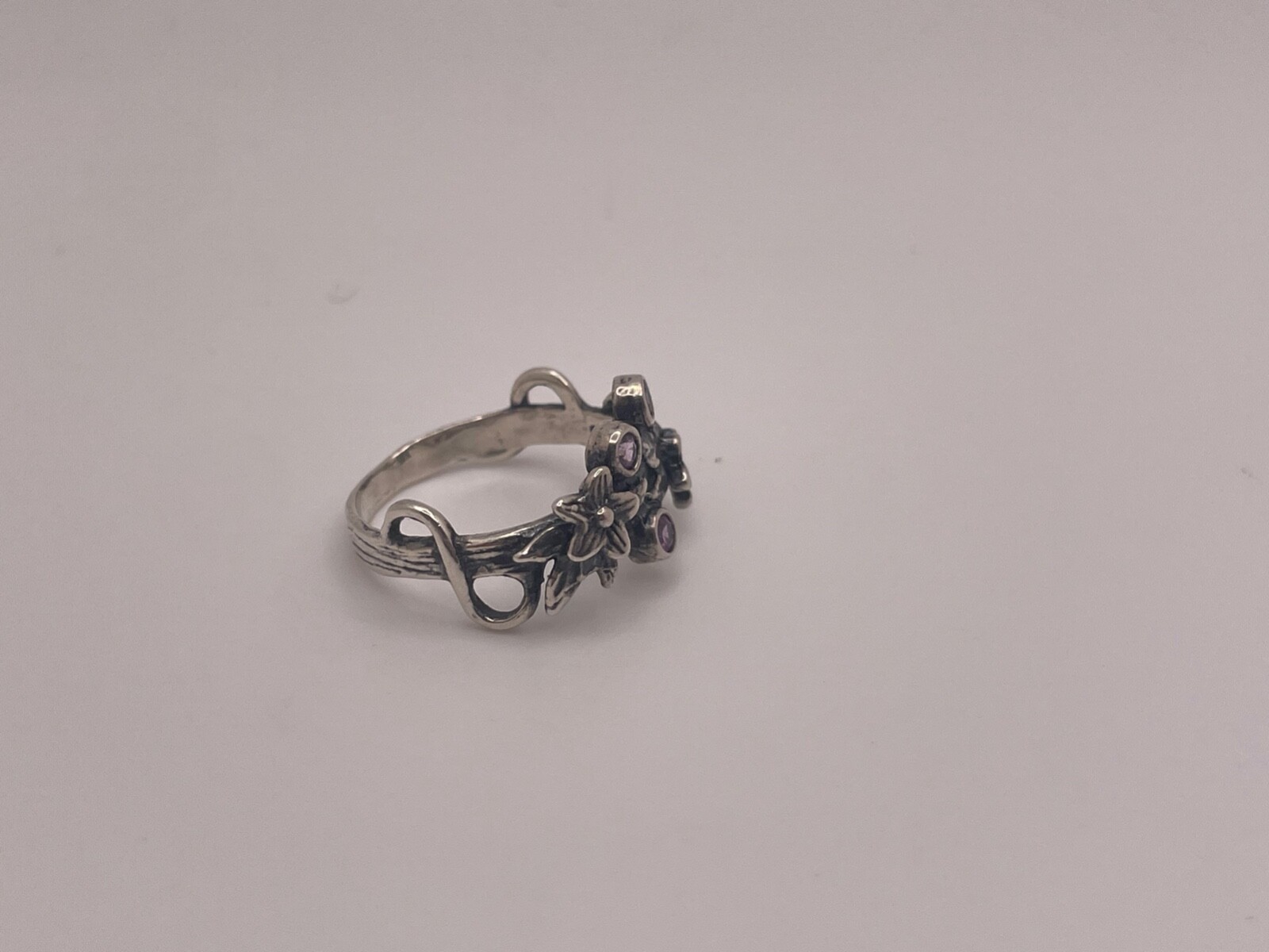 Sterling Silver Floral Flower Purple Stone Ring 3.64 grams Size 8