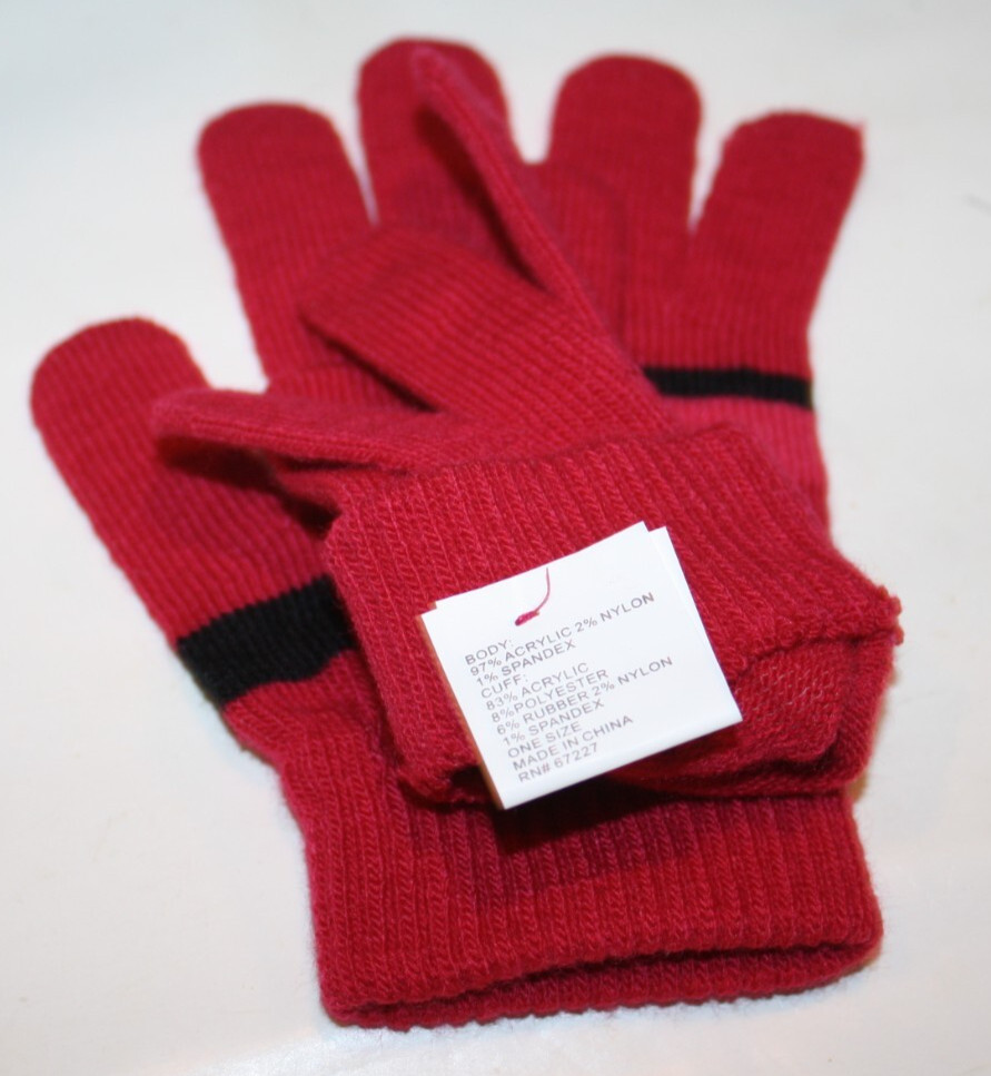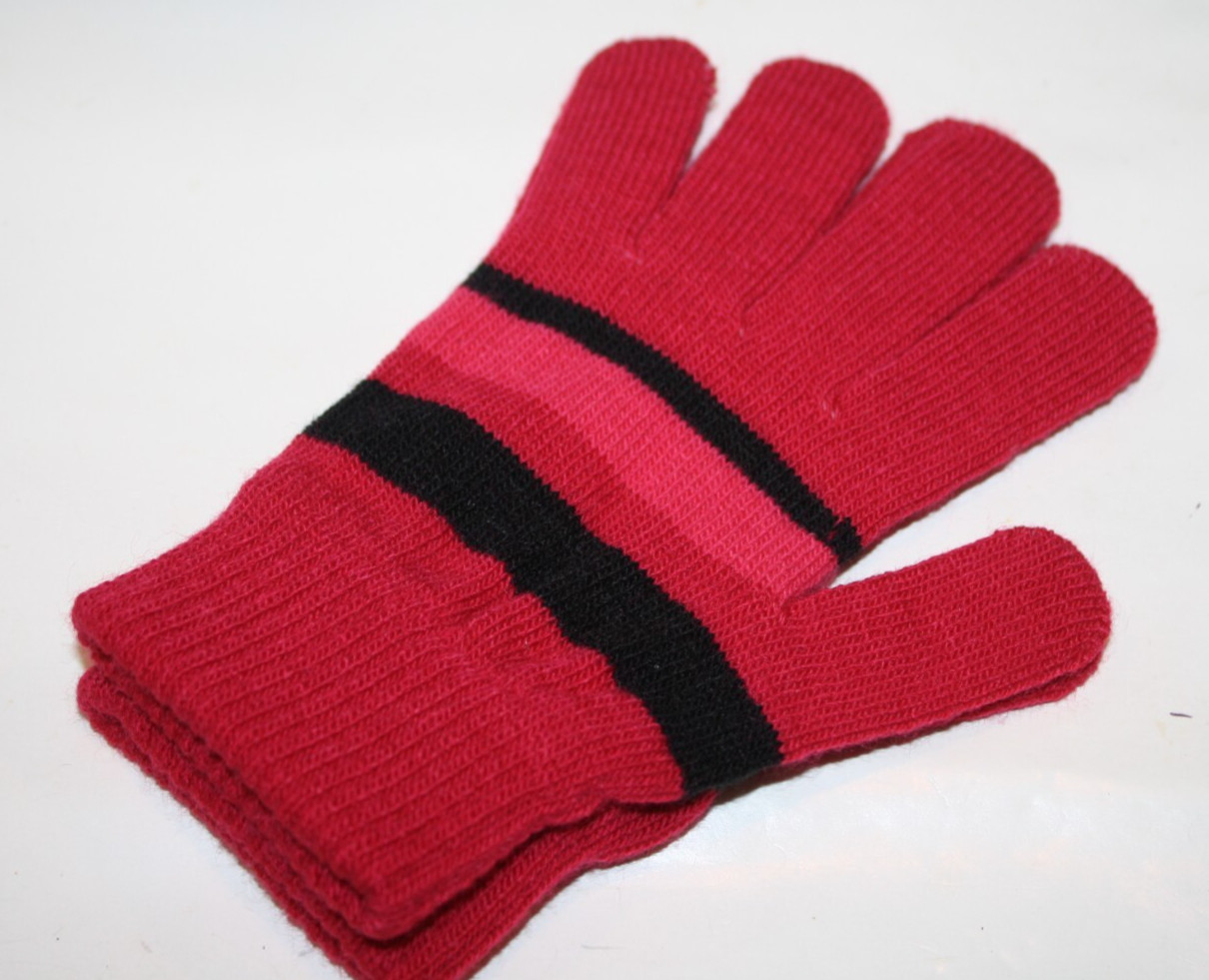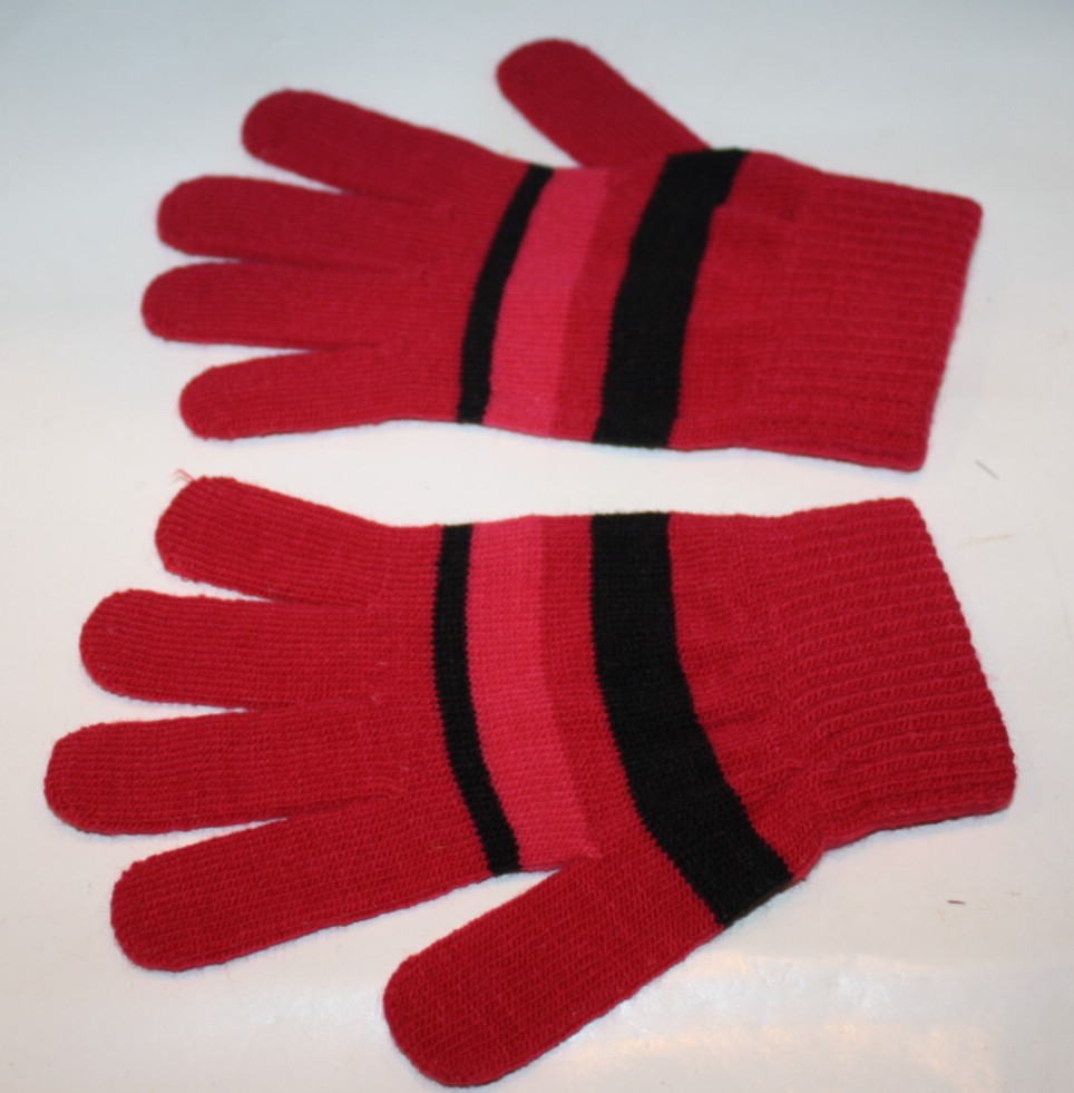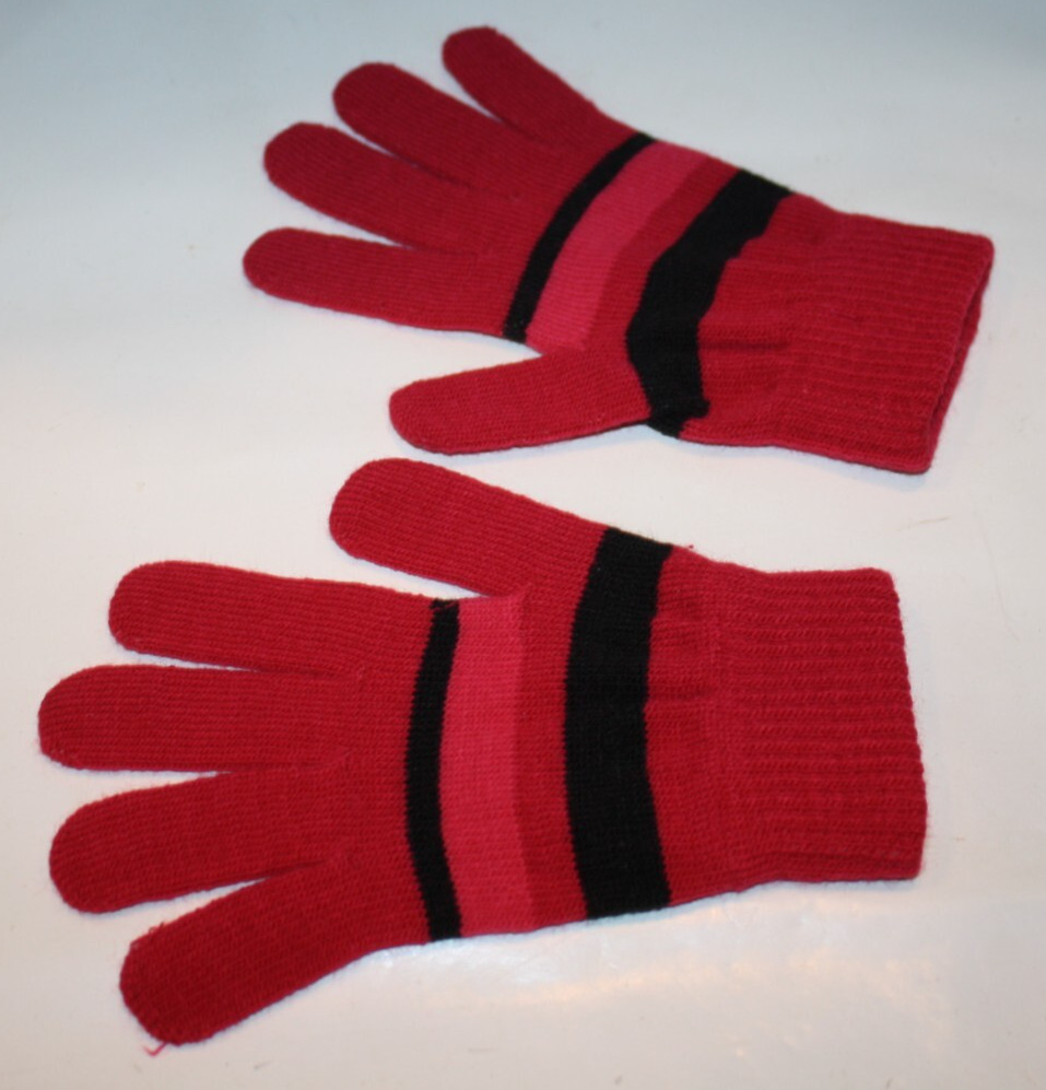 Unisex Boys Girls Burgundy Gloves Black Striped Knit Winter One Size Dollar Gen