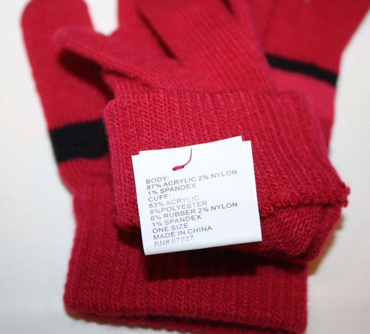 как выглядит Unisex Boys Girls Burgundy Gloves Black Striped Knit Winter One Size Dollar Gen фото