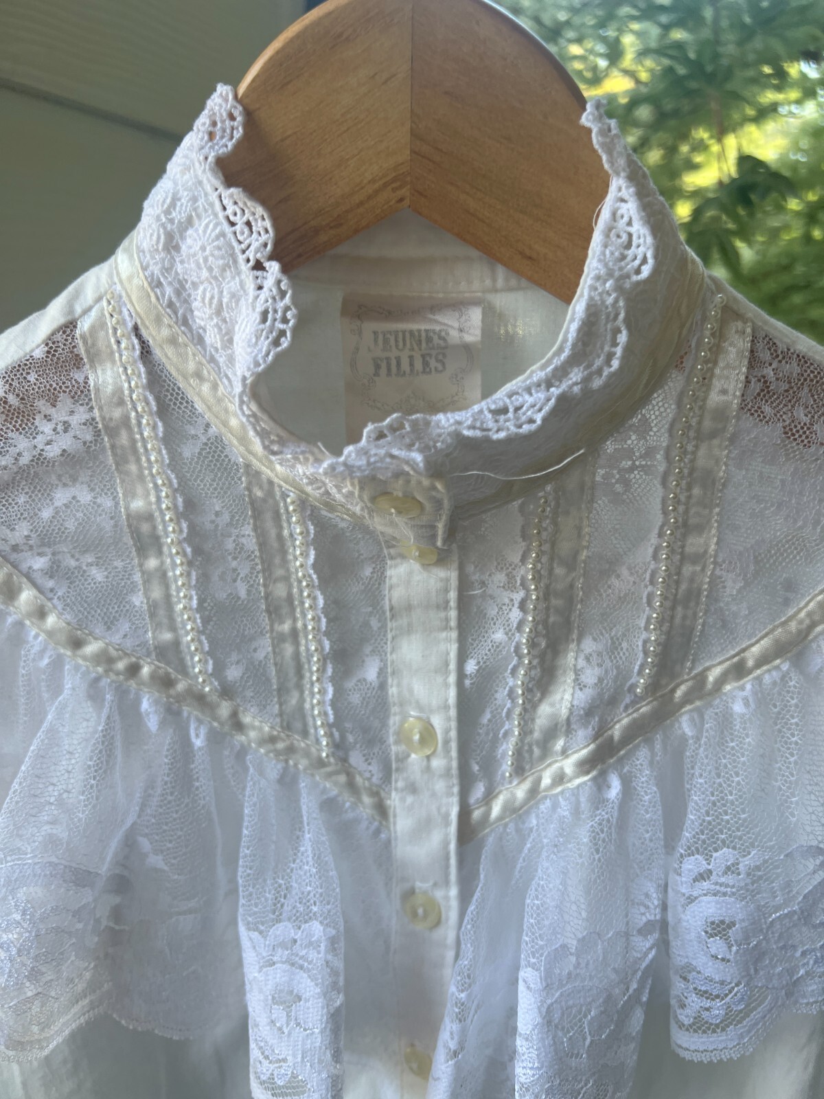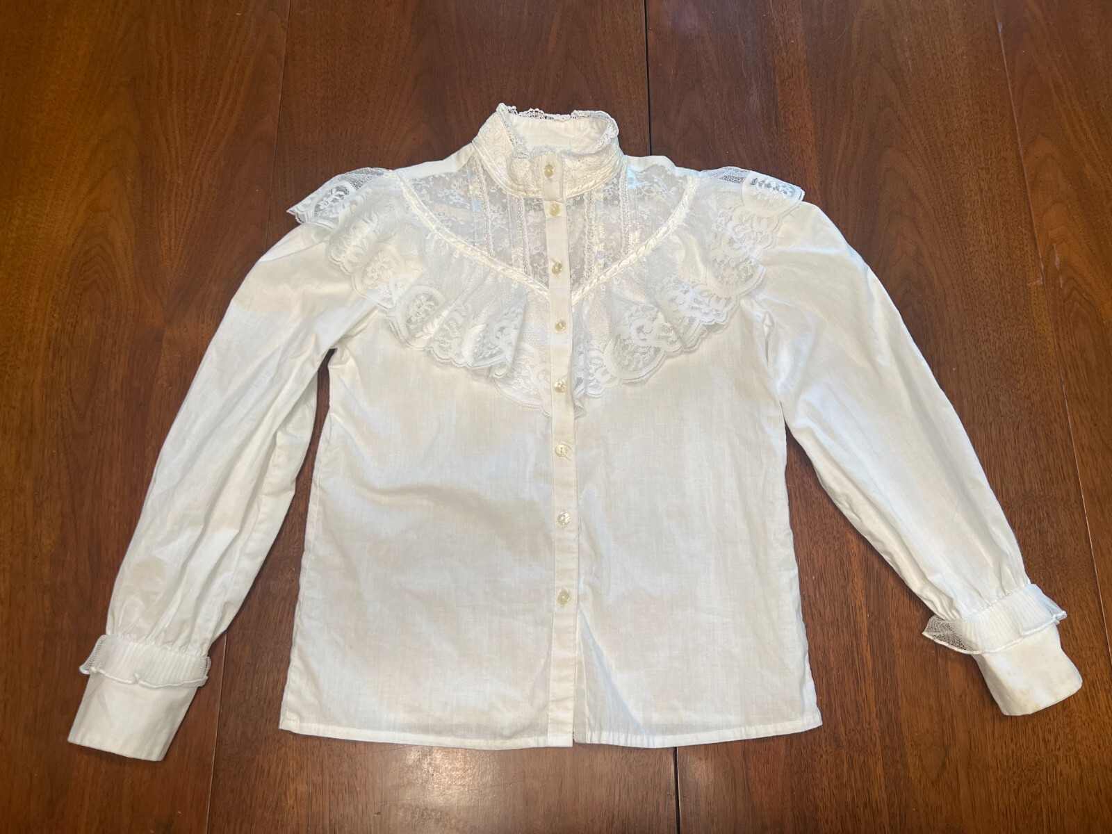 Vintage Gunne Sax Jeunes Filles Girls 6 White Blouse Victorian Prairie
