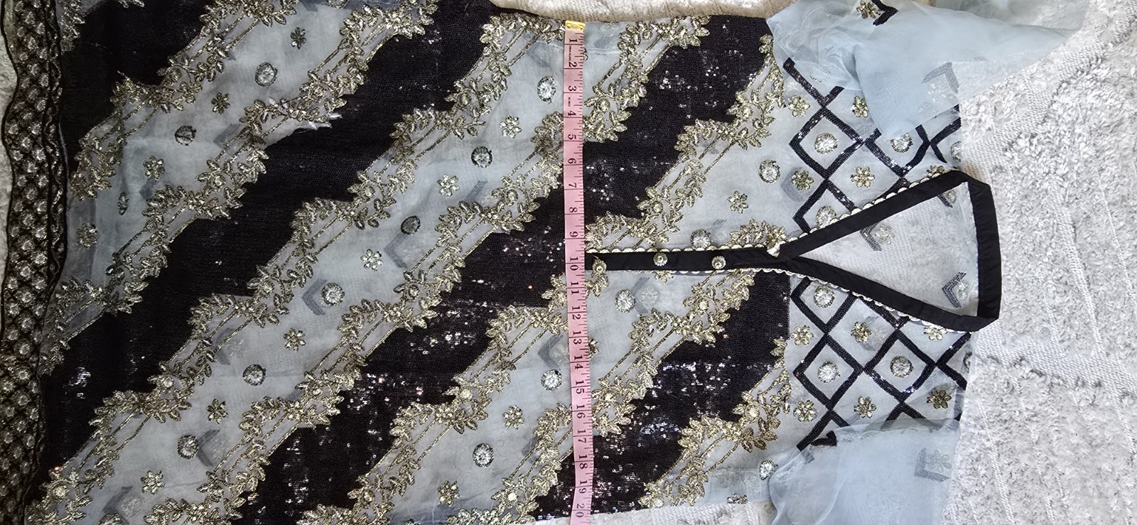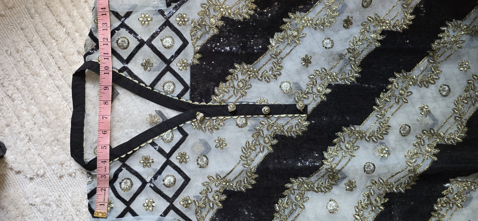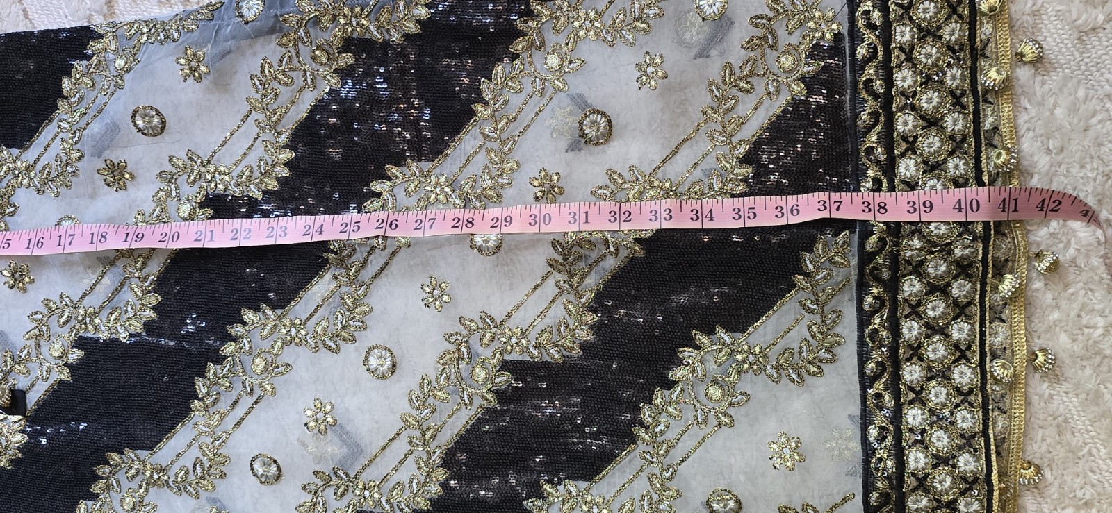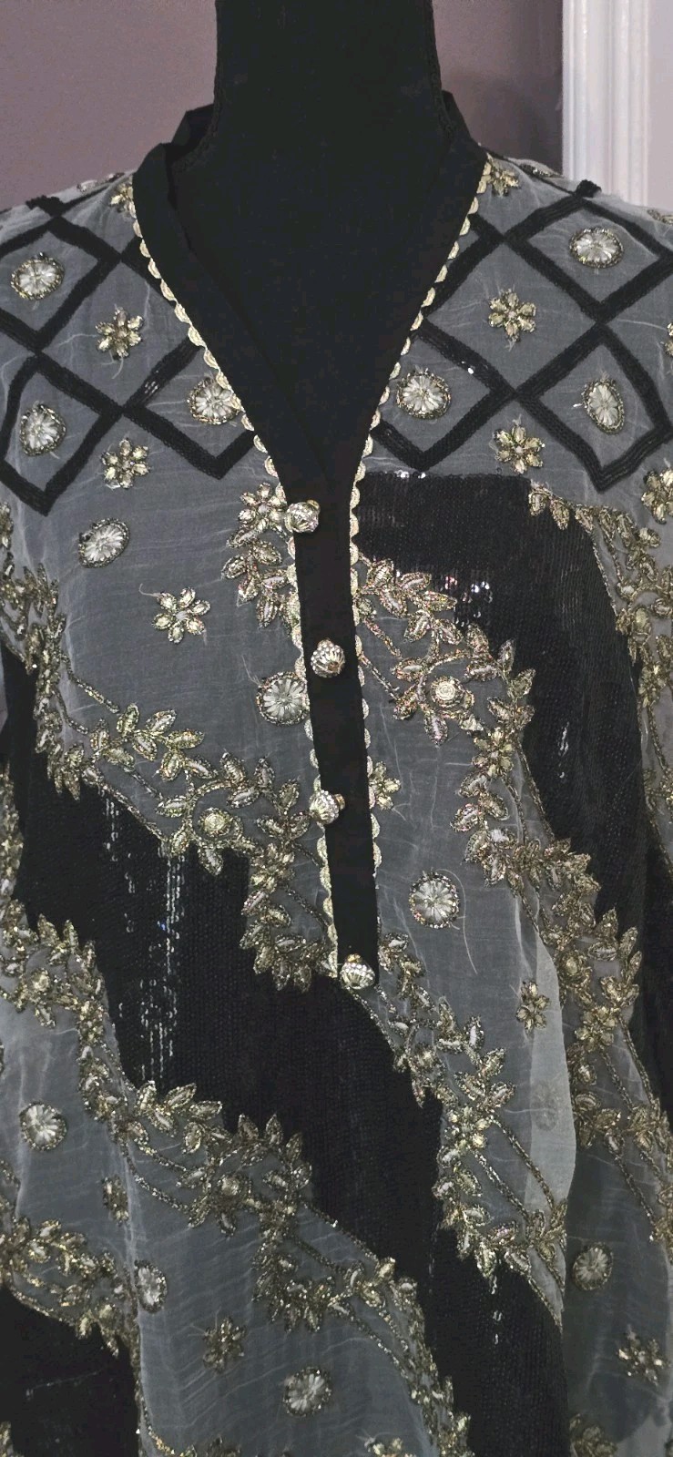 Pakistani Shalwar Kameez Dupatta Sheer With Black/Gold Embroidery 2 Piece set