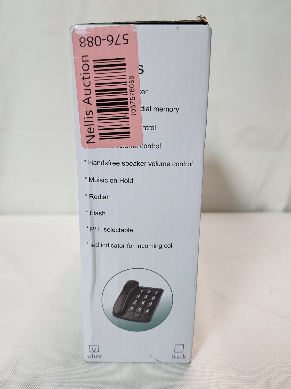 Big Keys Corded Telephone Incoming LED Speaker with Extra Loud Ringer, White