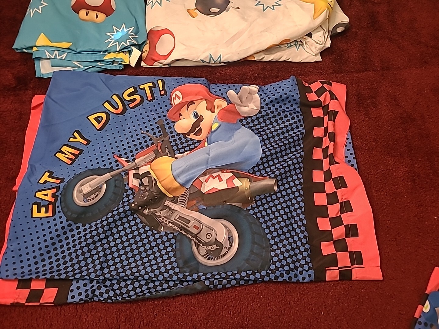 NINTENDO Mario Bedding Blanket Bedspread Full Flat Fitted Sheet 4 Pillow Cases