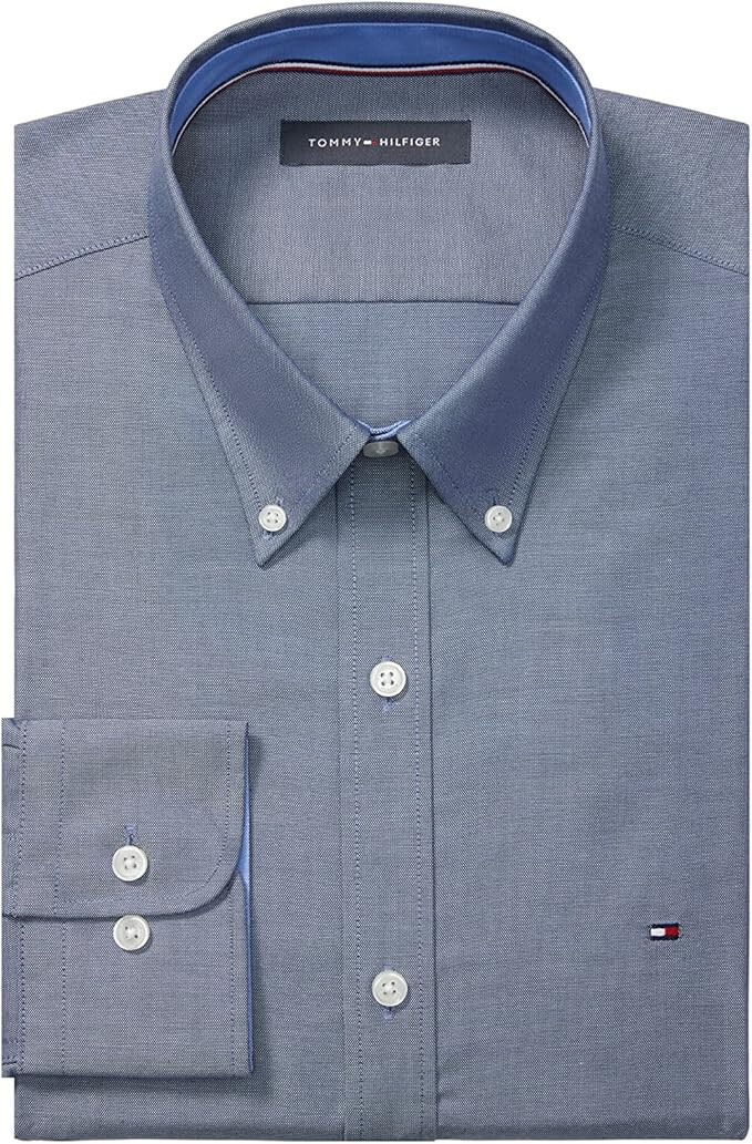 как выглядит Tommy Hilfiger Mens Dress Shirt Slim Fit Stretch Oxford-17.5" 32"-33" -Peacoat фото