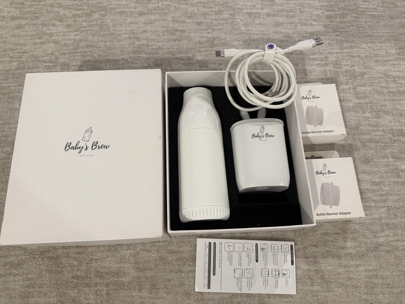 BABY'S BREW PORTABLE TRAVEL BOTTLE WARMER SET, Formula Dispenser, And Adapters