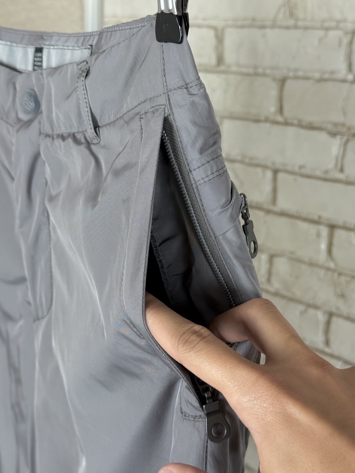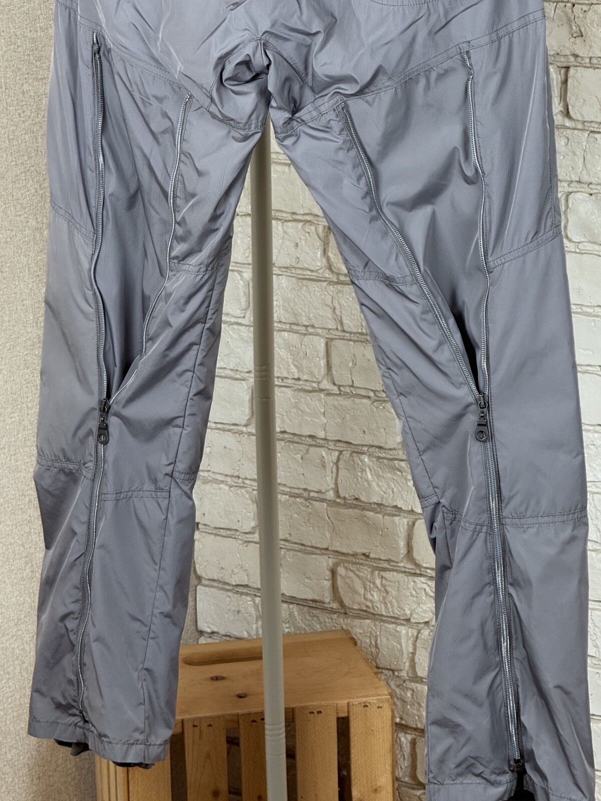 как выглядит Womans Vintage Marithe Francois Girbaud Nylon Gray Multi Zip Cargo Pant Size 42 фото