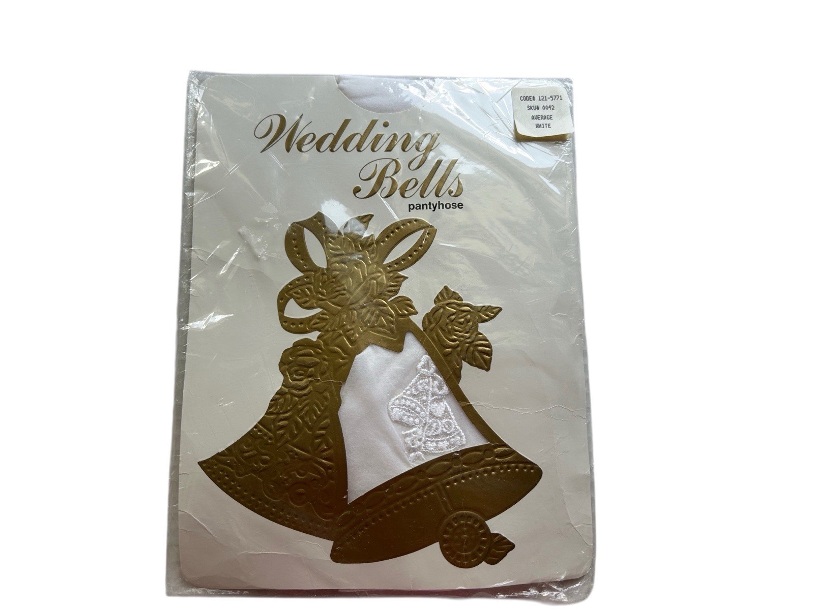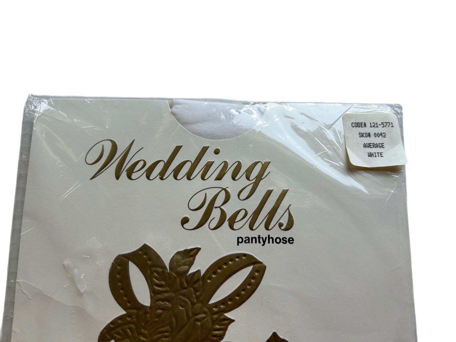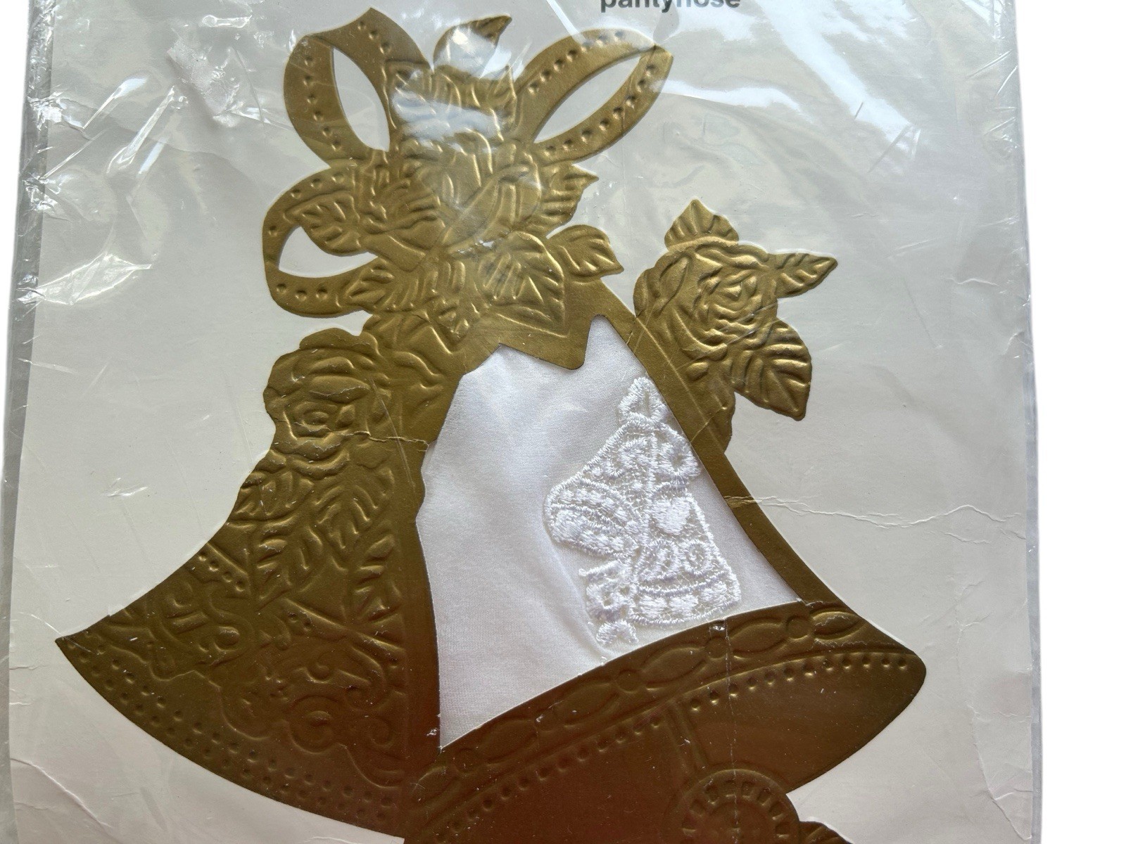 WEDDING BELLS APPLIQU PANTYHOSE AVERAGE WHITE BRIDE BRIDAL NEW NYLON HOSE GIFT