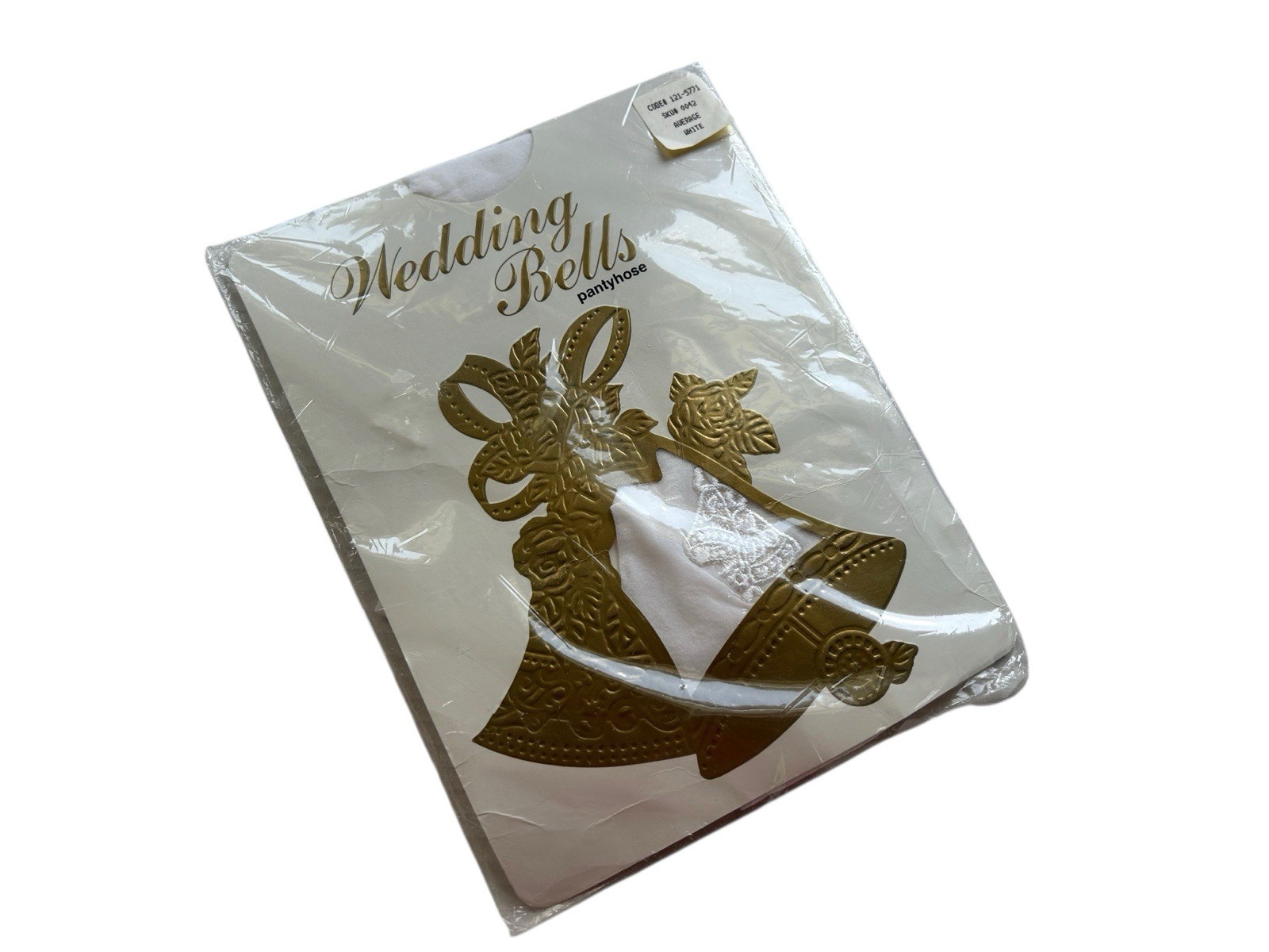 как выглядит WEDDING BELLS APPLIQU PANTYHOSE AVERAGE WHITE BRIDE BRIDAL NEW NYLON HOSE GIFT фото
