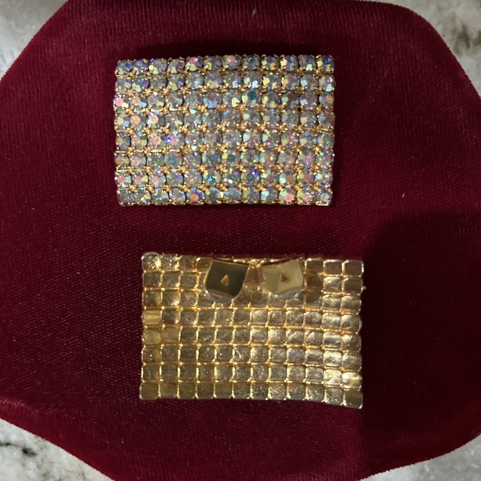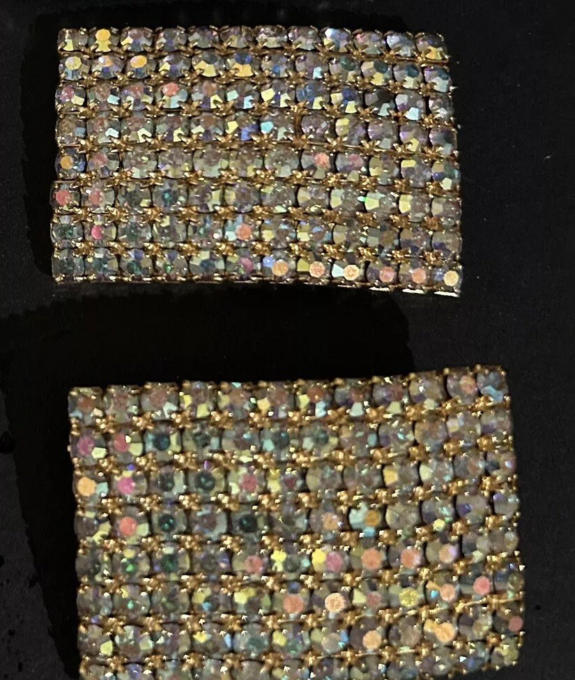 Vintage Aurora Borealis Shoe Clip Buckle Set-Gold Tone, Silver set Of -2 Musi