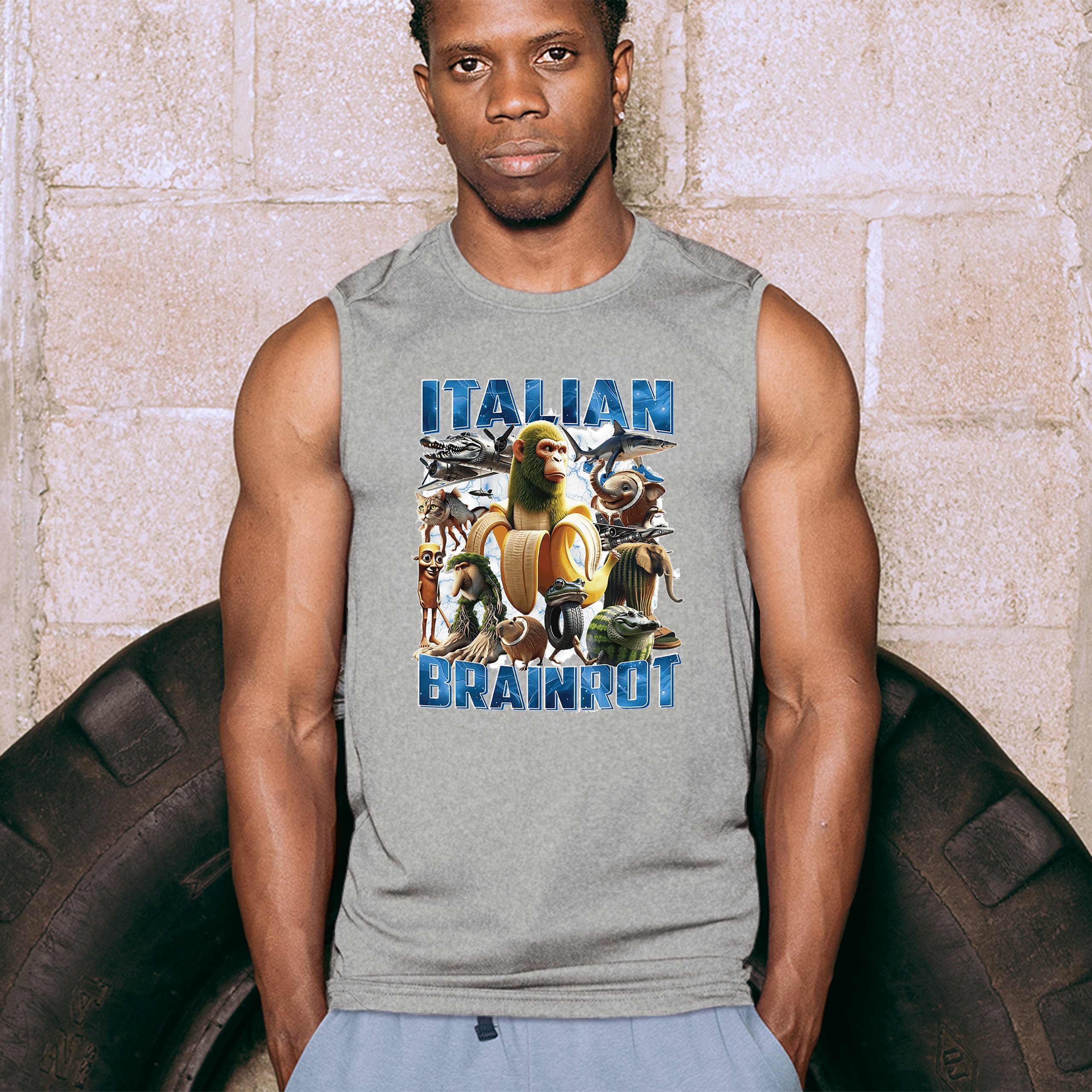 Italian Brainrot Men's Muscle Shirt Funny Absurd Gen Z Internet Meme Trend