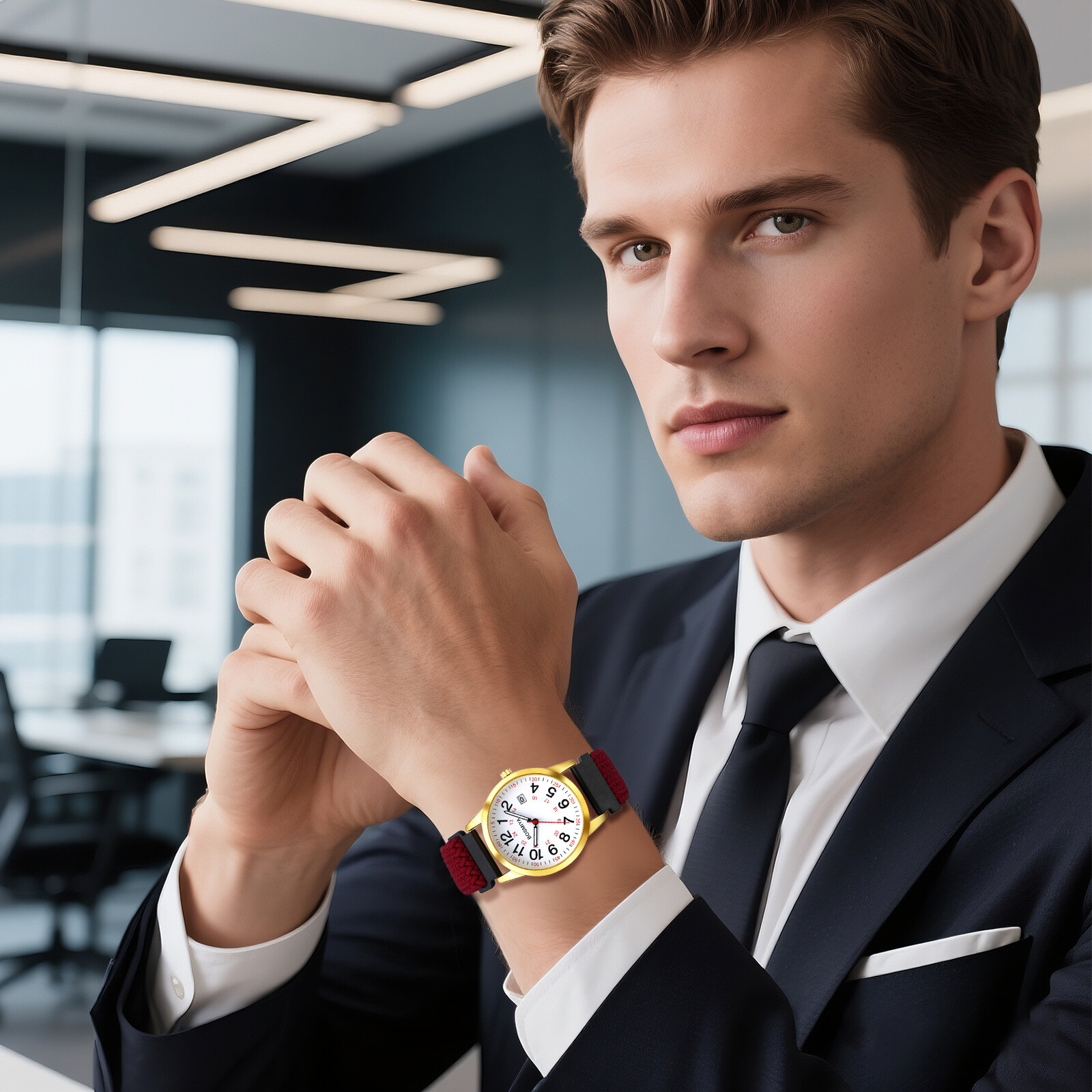 как выглядит Mens Womens Casual Quartz Wrist Watch with Date Elastic Woven Strap 24-Hour фото