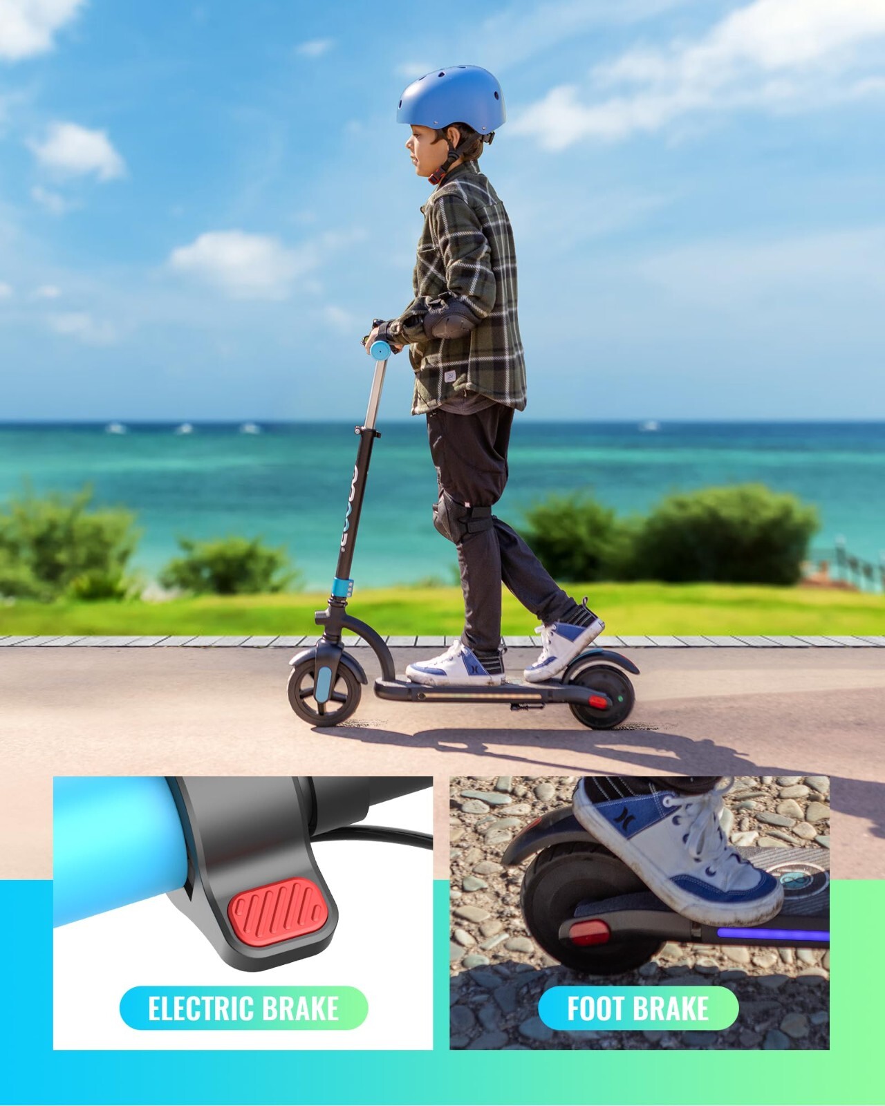 Gyroor 180W 10mph Speed Electric Scooter For Kids and Teens Ages 8-14-Blue